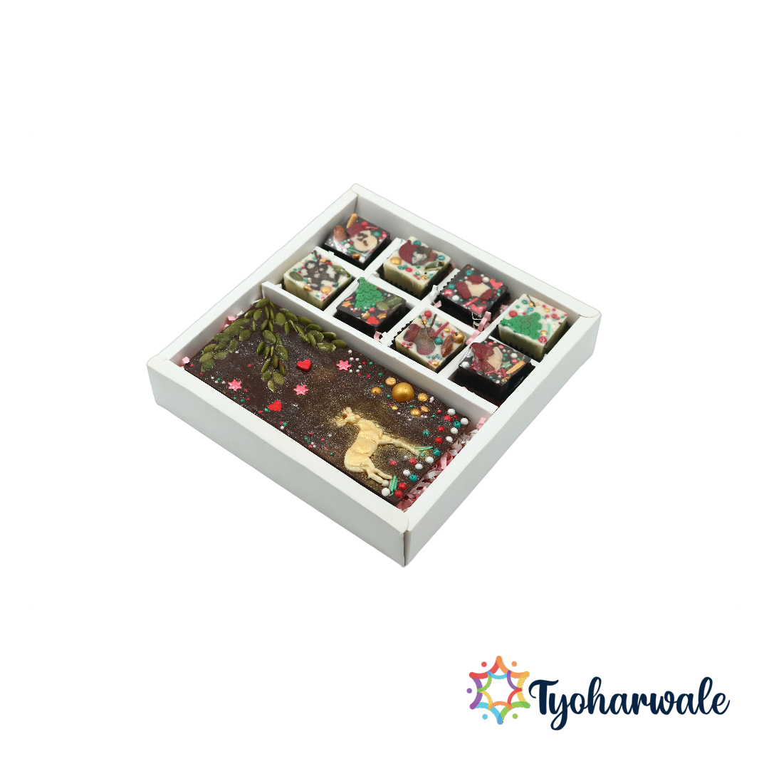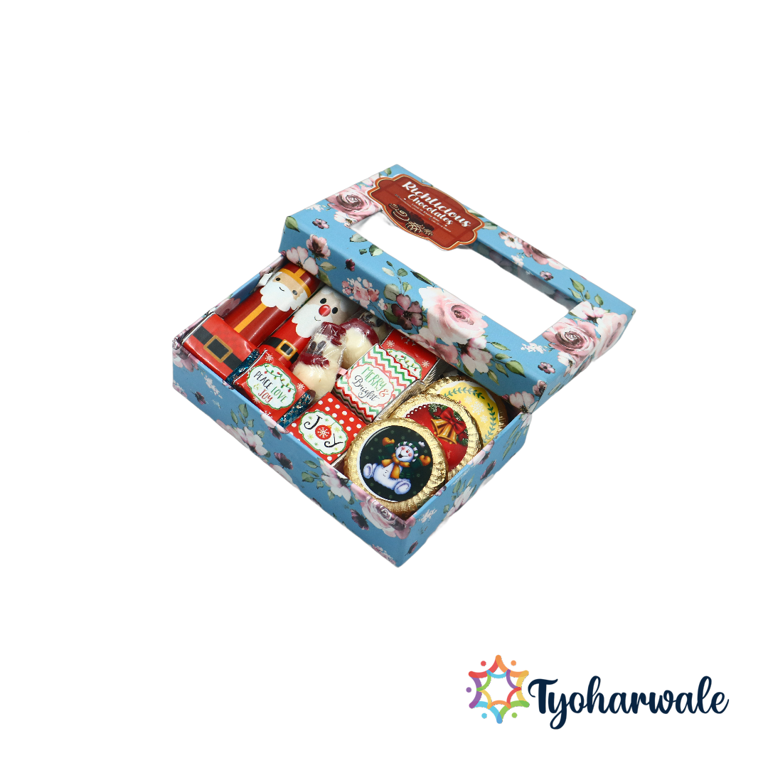 This Christmas Premium Chocolate box, crafted to bring festive chocolate joy, holiday sweetness, and treats to every celebration. Designed with a circular chocolate base featuring Santa, a Christmas tree, a wreath, and a gift box, it adds charm to cosy gatherings, cheerful evenings, celebrations, and heartfelt gifting moments. Each piece reflects the season’s sparkle with holiday appeal, making it an irresistible treat for families, friends, and Christmas chocolate lovers searching for holiday gifting chocolates, and premium sweets.₹750.00 -