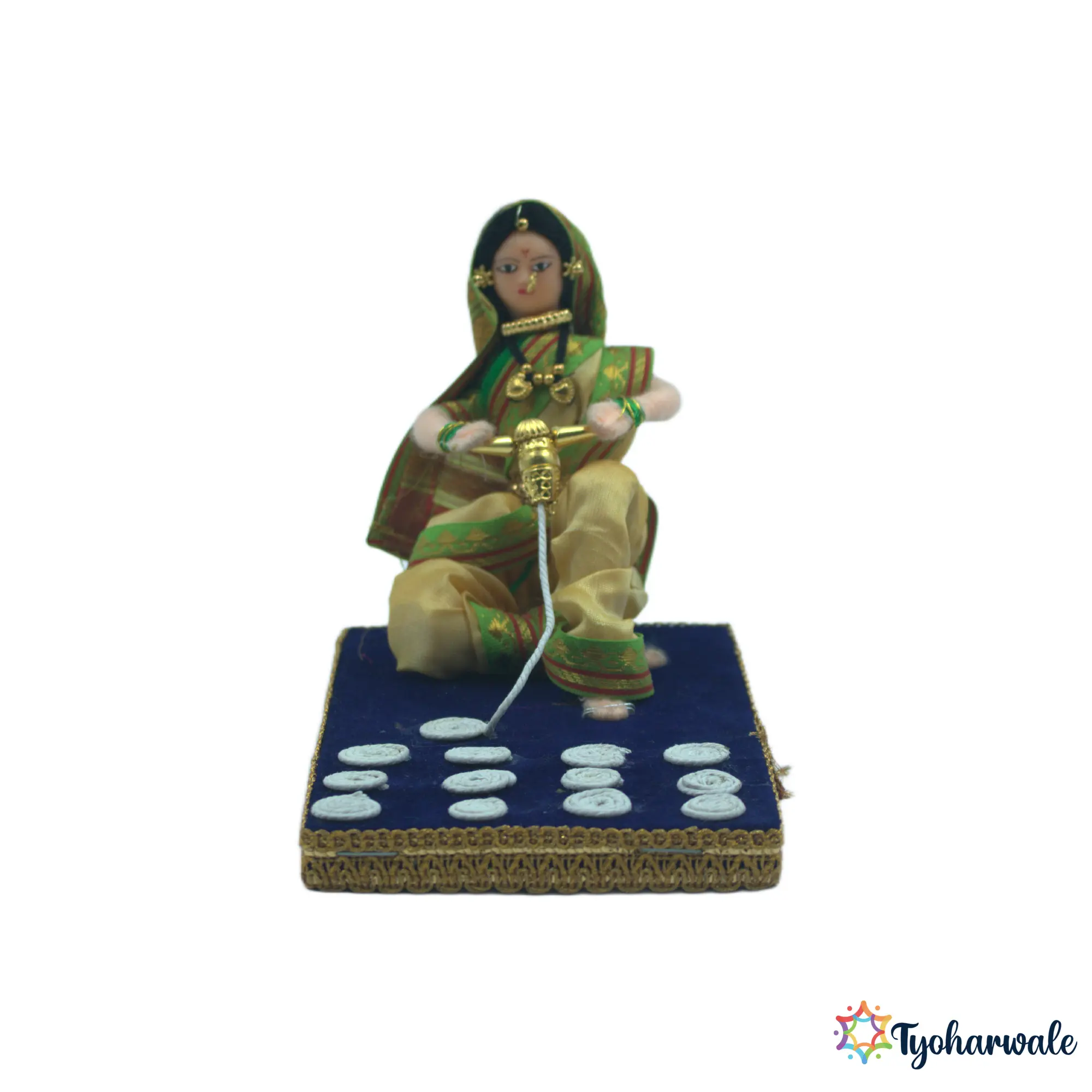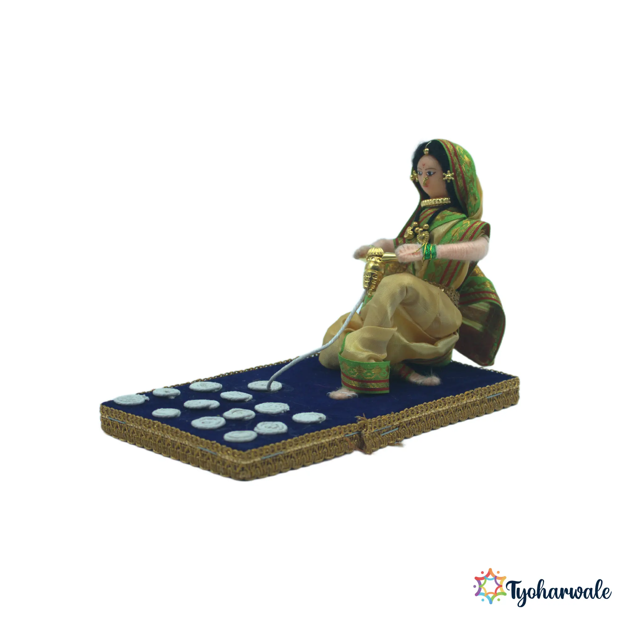 Lady Making Kurdai Traditional Marathi Wedding Setup for Rukhwat (कुरडई बनवणारी स्त्री) | kurdai making figurine | Marathi wedding decor Kitchen Activity Miniature