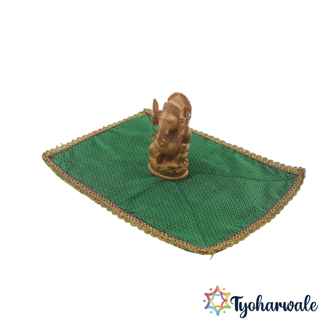 Perfect for daily rituals, bhajan gatherings, or festival ceremonies, the Khan Asan serves as a versatile temple mat and mandir seat cloth. The beautiful brocade weave and vibrant colours make it ideal as an Asan for Pooja, Festival Asan Mat, or Pooja Asan Cover. Lightweight, durable, and easy to maintain, this Khun Asan blends comfort and tradition effortlessly. The golden border and fine detailing enhance its festive appeal, making it suitable for housewarming, wedding ceremonies, or spiritual gifting. Each Khan Asan is a symbol of devotion, artistry, and timeless tradition. This Asan cloth is designed for both compact and elaborate pooja arrangements.