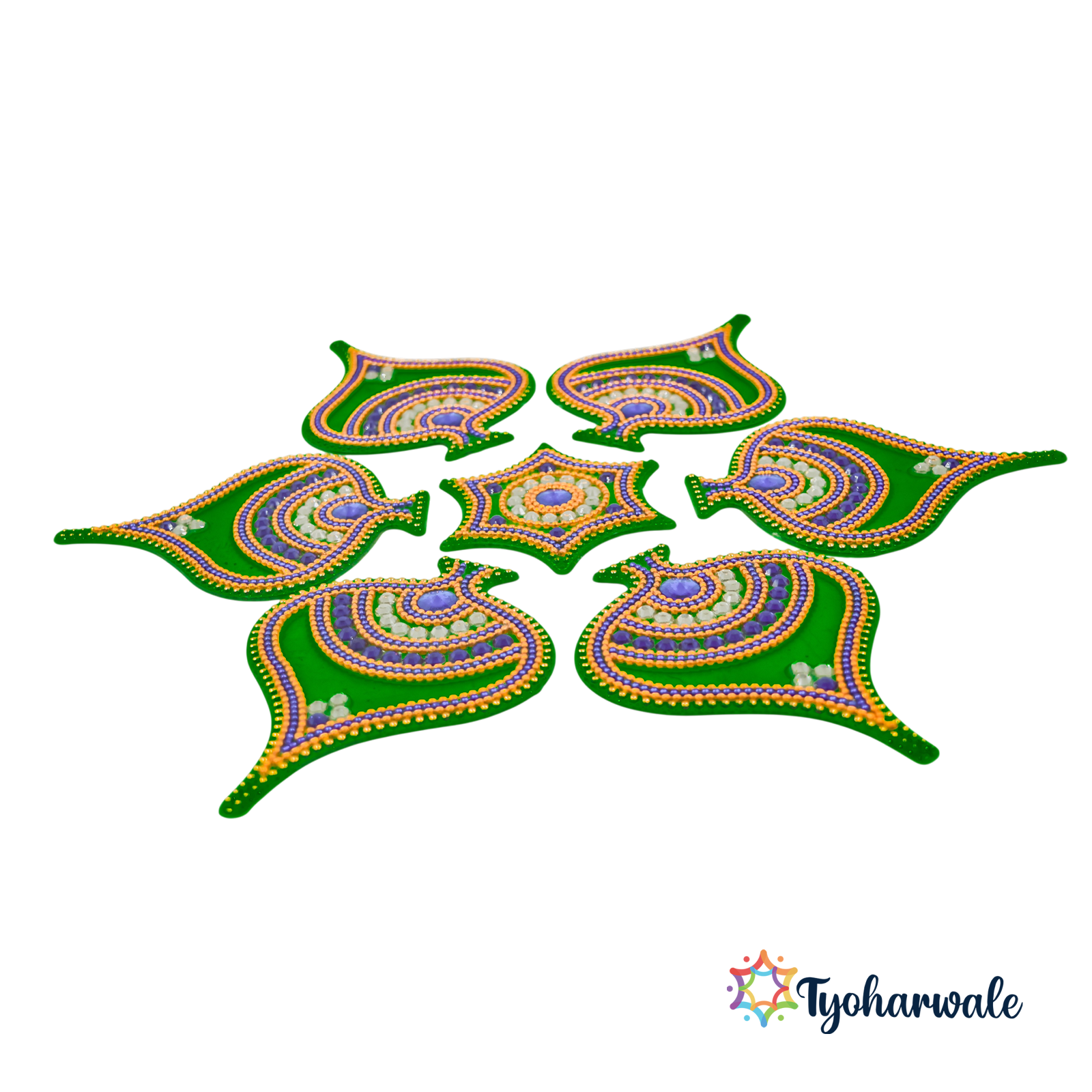 Tyoharwale artificial rangolis are manufactured with premium quality standards. At Tyoharwale you will find artificial raangolis that ensure a mess-free, reusable, and visually appealing decoration, suitable for homes, offices, temples, and event venues.