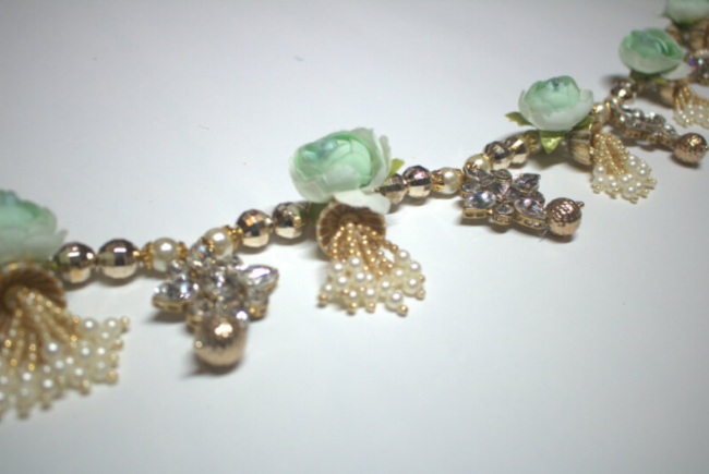 Blue Flower Crystal Toran – Minimalist Handcrafted Door Hanging for Diwali, Weddings, Navratri, Housewarming & Pooja Rooms