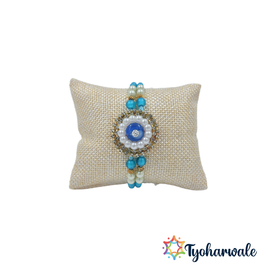 This Blue Moti Rakhi, with a mix of tradition and style, is available at Tyoharwale. Whether you’re looking to buy rakhi, buy rakhi online, or find the perfect Raksha Bandhan gift for brother or a thoughtful Raksha Bandhan gift for sister, we’ve got meaningful options for everyone. From traditional raakhi to the latest rakhi design, we have every fancy or designer rakhi that you will like. If you’re thinking of Rakshabandhan kab ka hai, it’s time to choose the perfect raakhi online only at Tyoharwale.