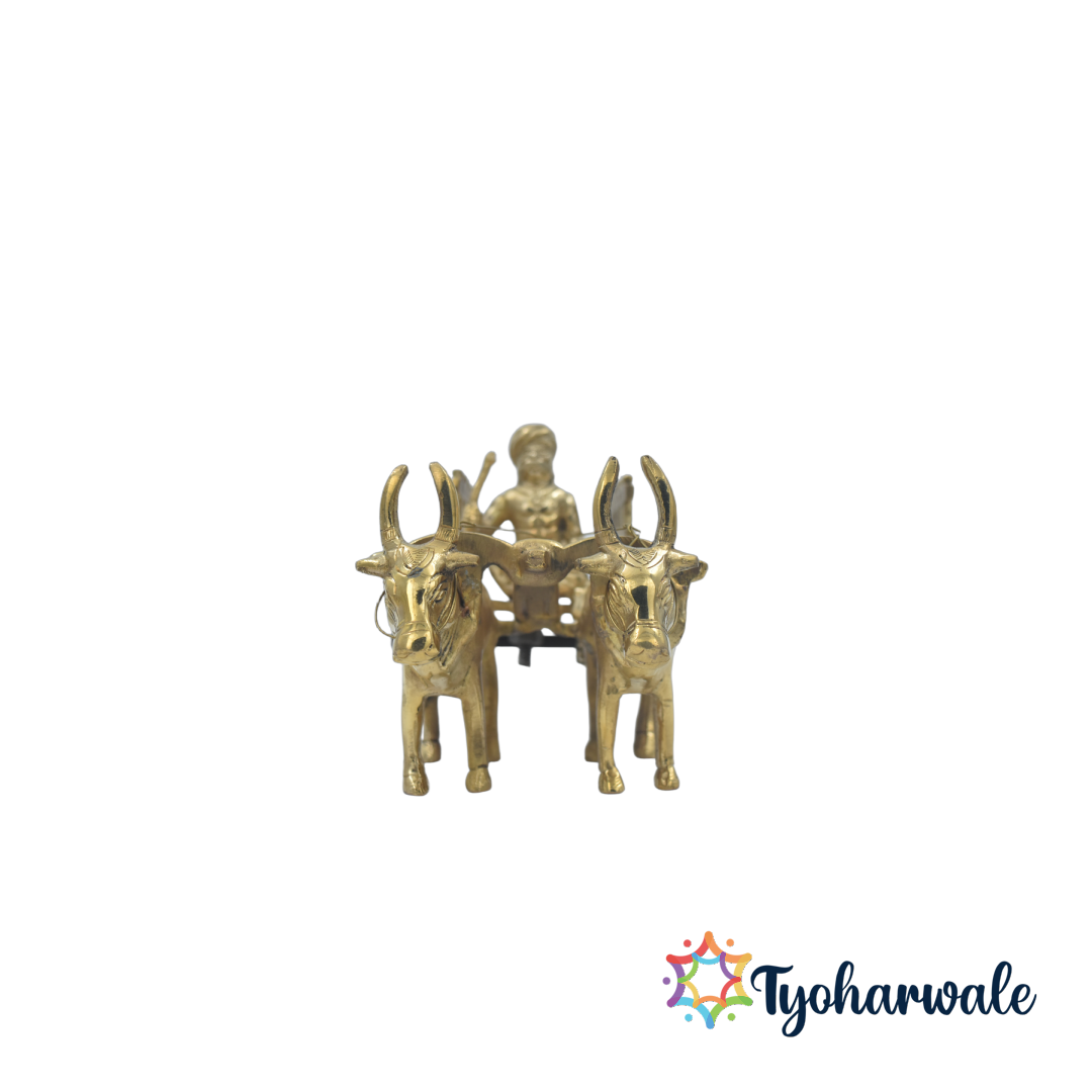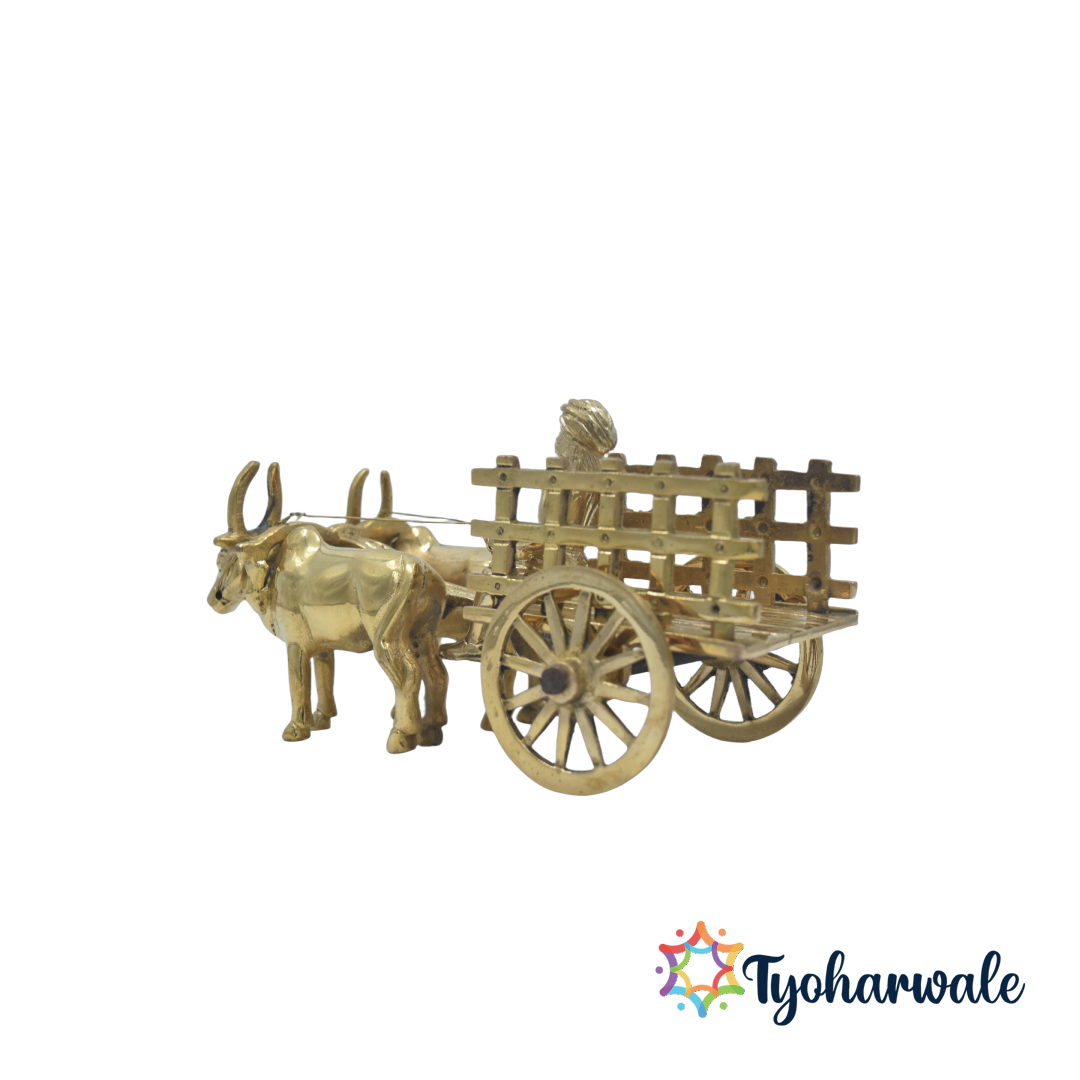 This brass bullock cart decor is a perfect gift for loved ones, symbolizing growth, effort, and achievement—values deeply rooted in rural Indian life. It serves as a Vastu decorative item, believed to attract positivity and harmony into the home. Whether placed in the living room, temple, or study, the brass bail gadi showpiece adds sophistication and cultural significance.Bring home this handcrafted brass bullock cart statue and let its detailed artistry and ethnic appeal elevate your space. A true piece of Indian heritage, it’s a must-have for those who cherish traditional design, rural aesthetics, and brass decor.Perfect for Diwali decorations, festive gifting, and home interiors, this antique finish brass bullock cart stands as a tribute to India’s handcrafted excellence — timeless, meaningful, and full of cultural pride.