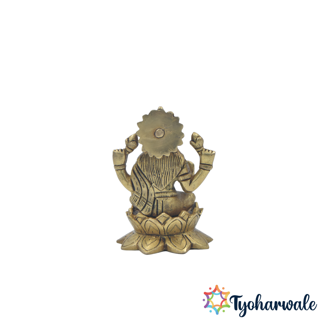 Brass Lakshmi Devi Idol Statue | Handcrafted Maa Laxmi Murti for Pooja, Temple, Home, Office, Diwali and Festival Décor, Spiritual Gifting, Car Dashboard, Small Size Idol