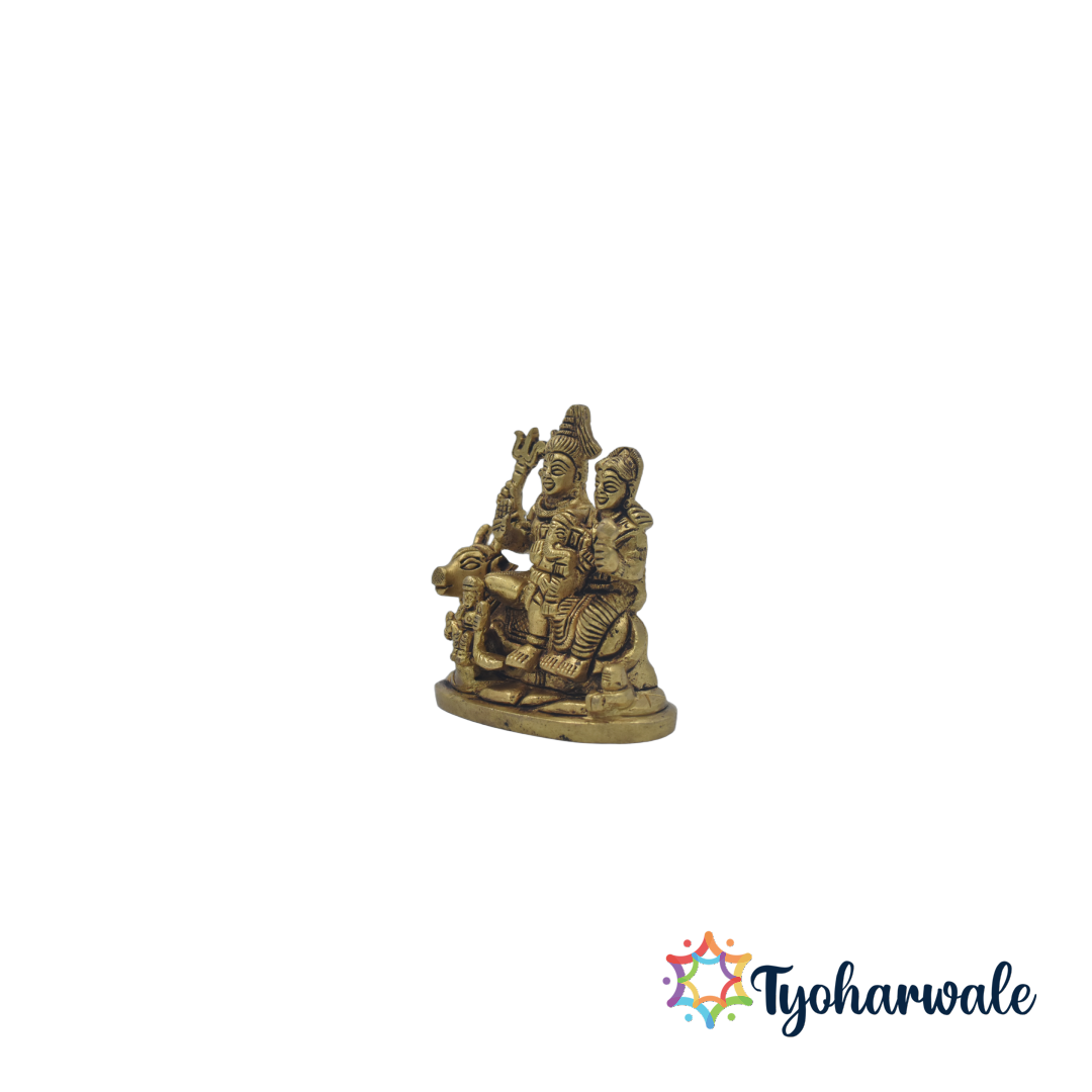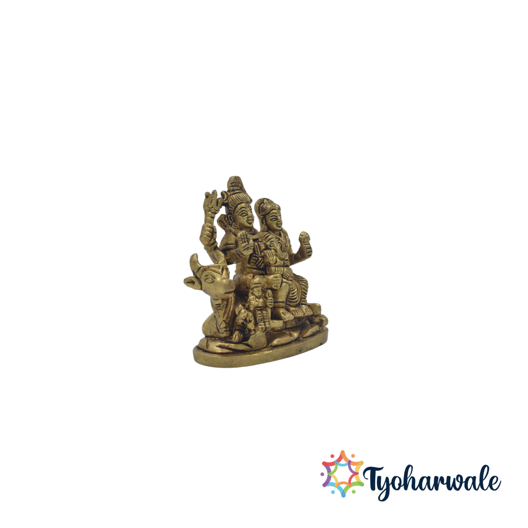 Crafted from solid brass with an antique finish, this Shiv family idol captures intricate details of each deity, radiating spiritual energy and craftsmanship. The Shiv Parivar murti embodies the essence of family harmony and devotion, making it a cherished symbol for devotees of Mahadev and Maa Parvati.Ideal for daily worship, meditation, or yoga spaces, this brass Shiv Parivar statue brings serenity and focus to your environment. In Vastu Shastra, placing the Shiva Parvati idol at home is believed to bring marital bliss, success, and positive energy.Whether you celebrate Maha Shivratri, Diwali, or weddings, this brass Shiv Parvati idol makes a thoughtful spiritual gift for loved ones. It also serves as a beautiful home decor showpiece, blending tradition with timeless artistry. The antique brass polish adds a royal touch, making it a striking centerpiece for temples or living rooms.This handcrafted Shiv family brass sculpture is designed for durability and purity, reflecting traditional Indian metalwork excellence. It’s a symbol of divine protection and guidance, reminding you of strength, faith, and inner peace.Add this Brass Shiv Parivar idol to your collection and let Lord Bholenath, Parvati Mata, and Ganeshji bless your home with prosperity, harmony, and divine grace. Perfect for home temple decor, festive gifting, and daily pooja rituals, this masterpiece embodies the true spirit of devotion and craftsmanship.