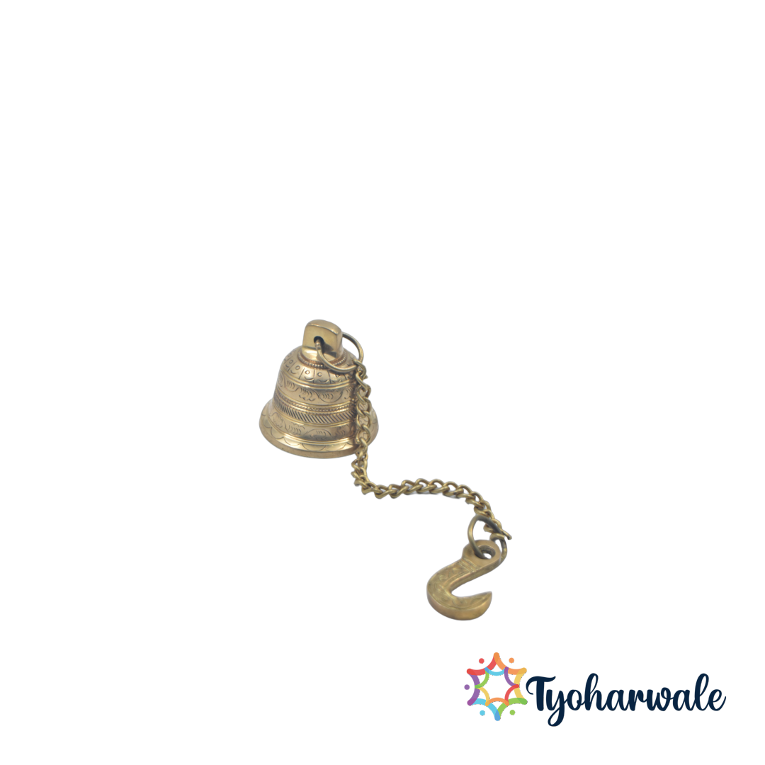 Brass Wall Hanging Bell with Chain and Hook | Decorative Pooja Ghanti for Home Mandir, Temple, Living Room, Door, Balcony |