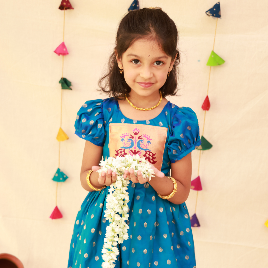 Chintamani Paithani Border Balloon Sleeves Frock