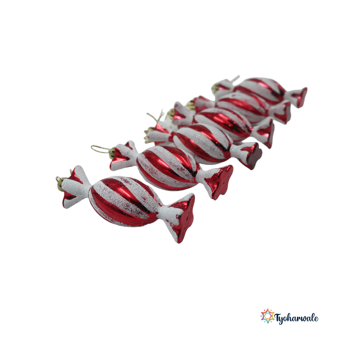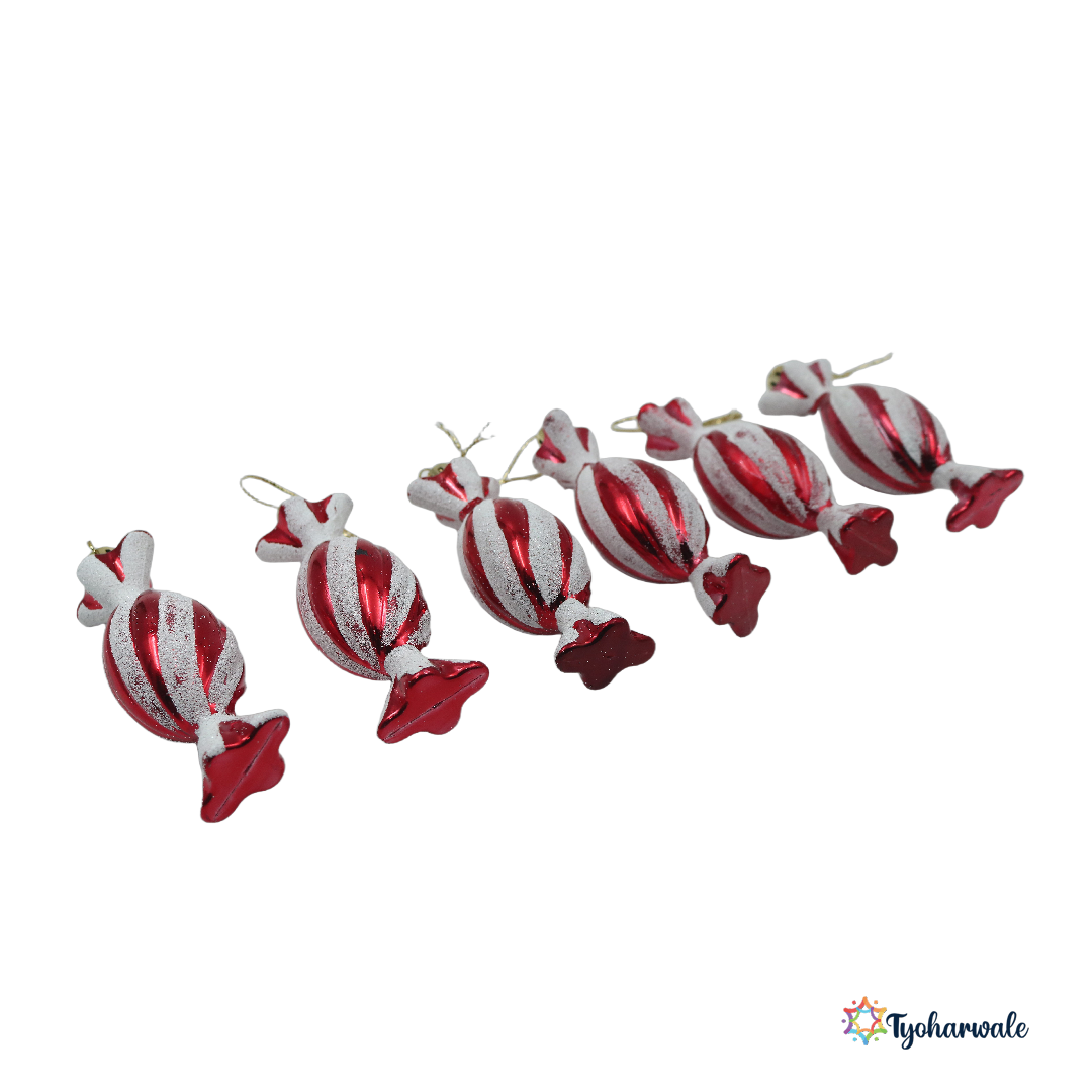 Cute Christmas Candy Ornaments (Set of 6) | Red and White Hanging Decorations for Christmas Tree, Party Décor, and Kids’ Xmas Themes