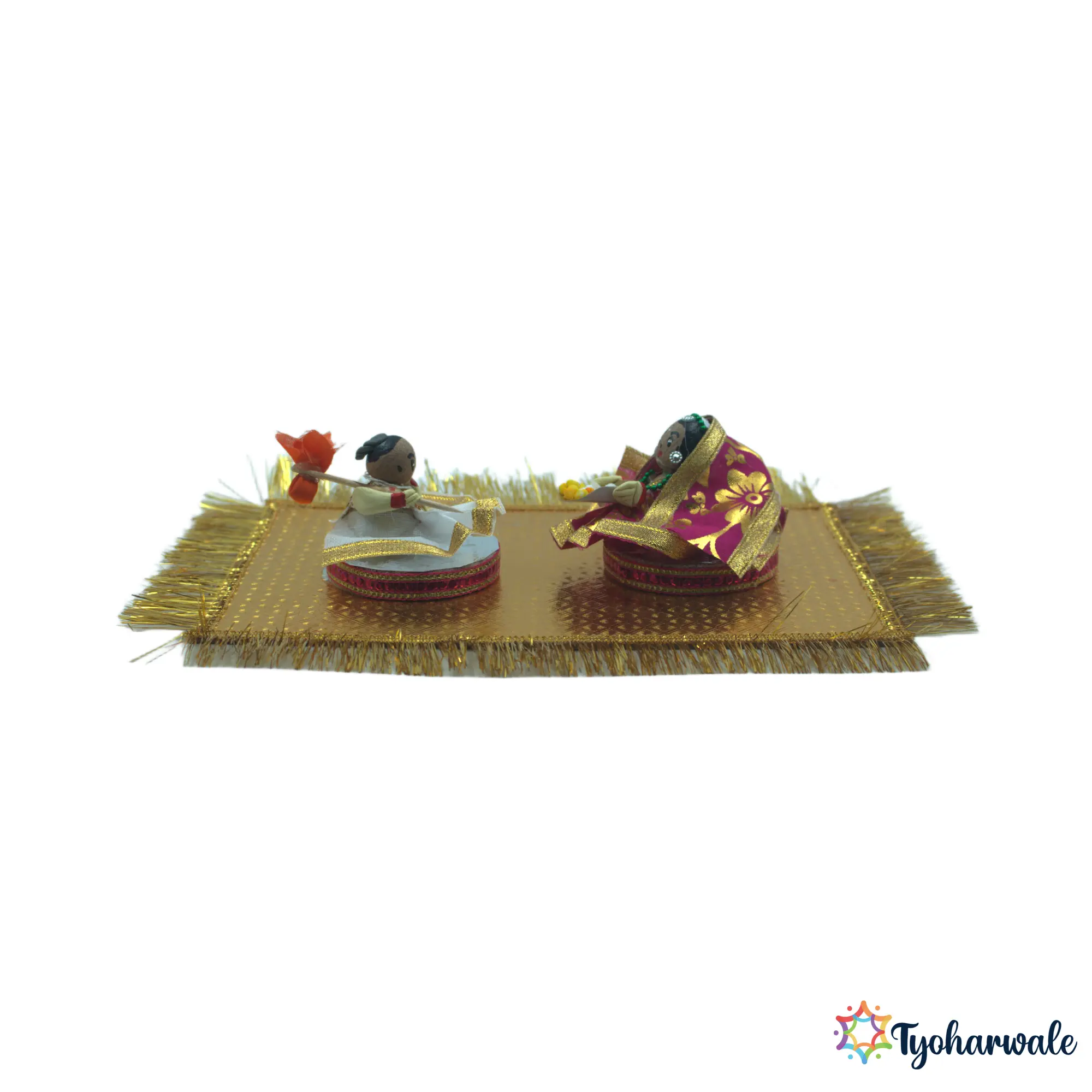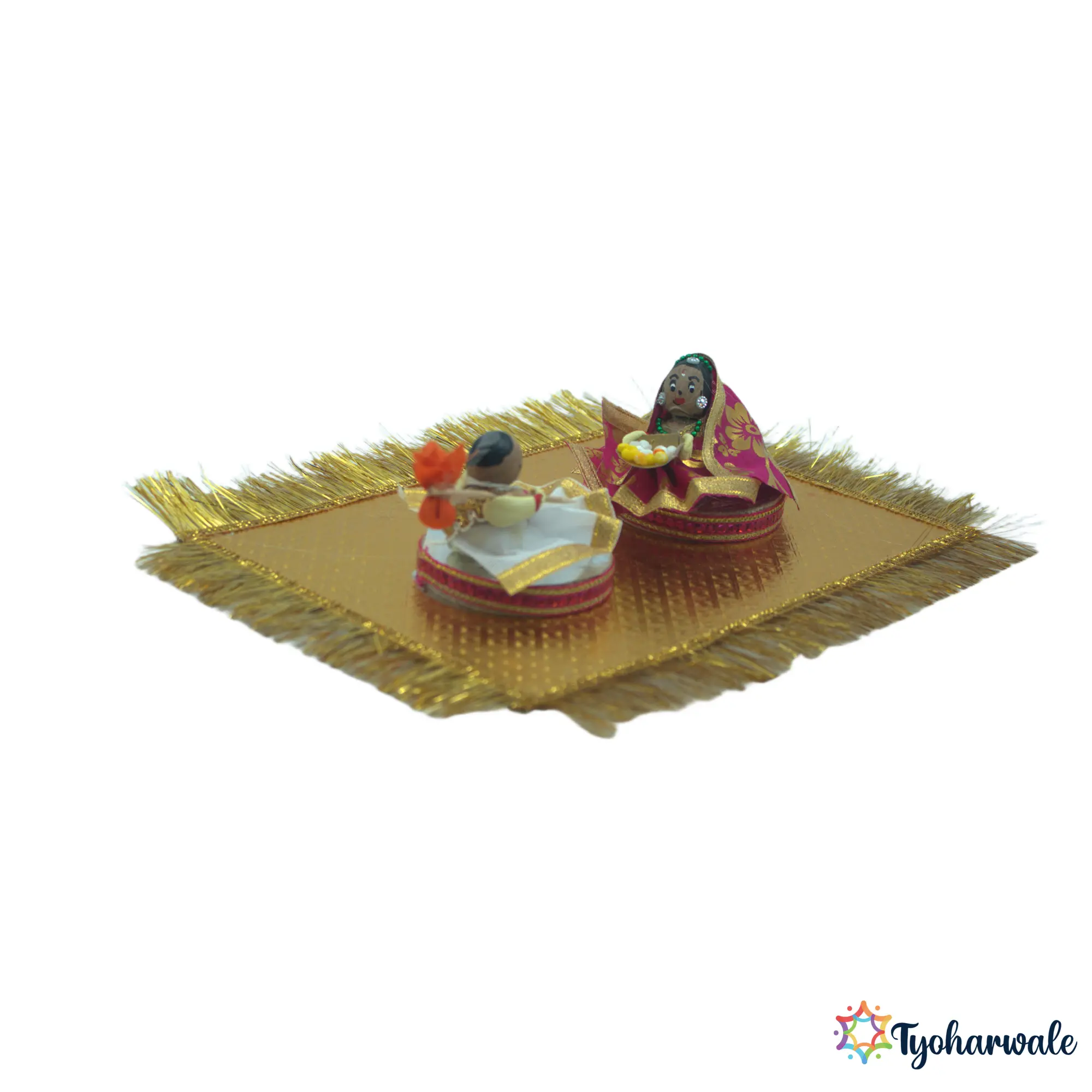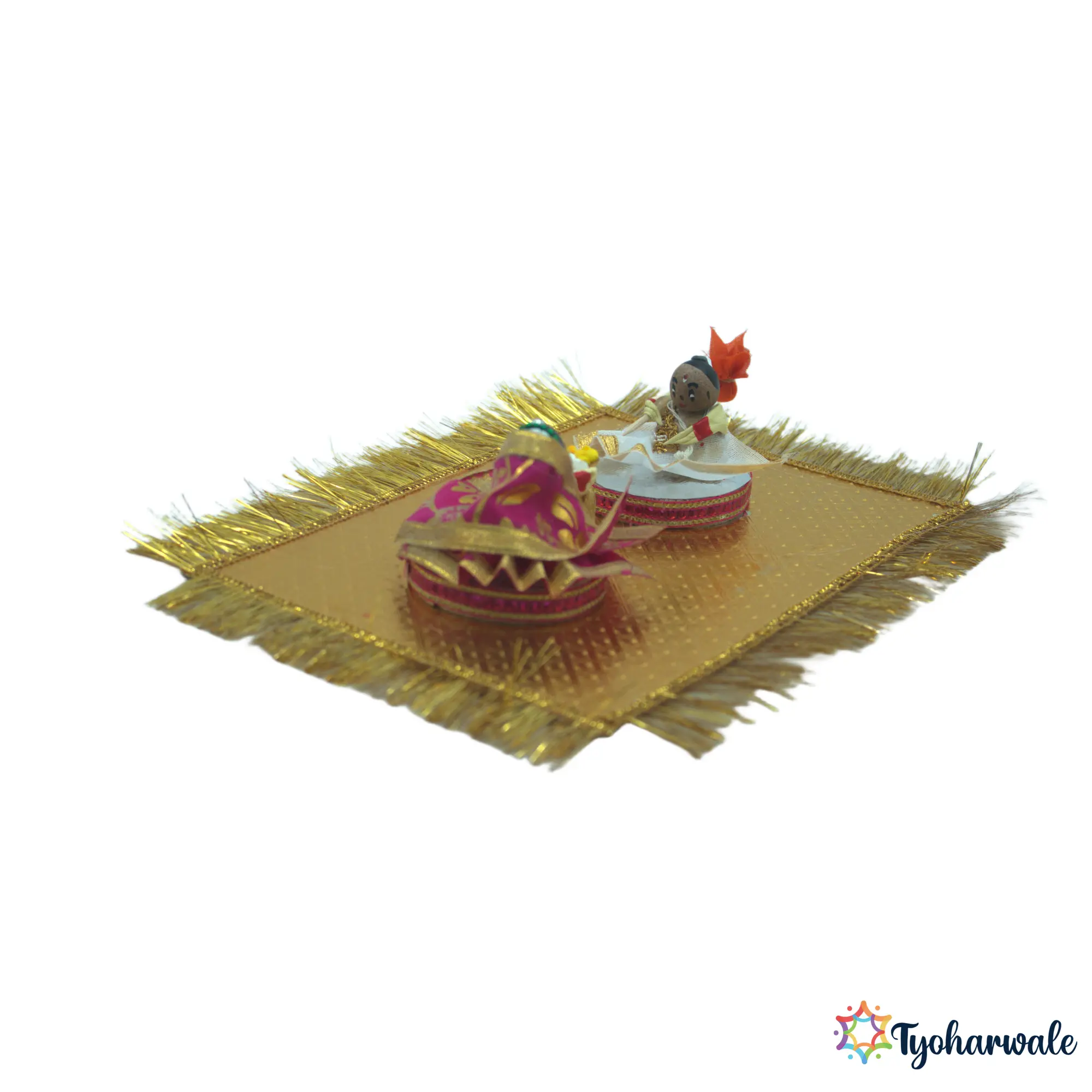 This supari couple setup is used in wedding rukhwat displays to symbolically represent the bride and groom. Arranged as part of traditional marriage ceremonies, it is especially common in Maharashtrian weddings. It is suitable for wedding rituals, cultural presentations, and traditional marriage setups.