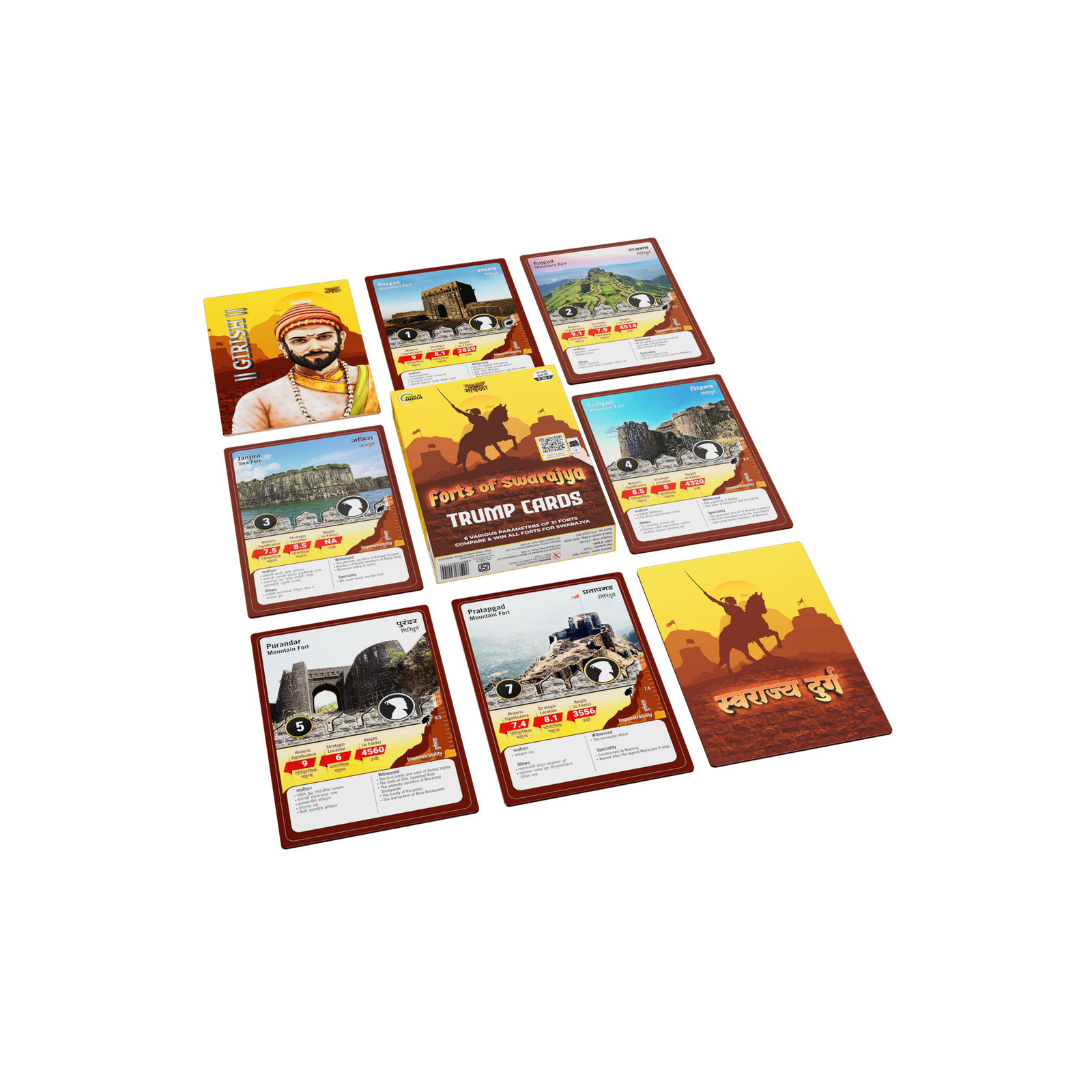 - Significance Cards: 2 cards that elaborate on the importance of the forts as articulated by Shiv Chhatrapati. Available in both Marathi and English. Insightful explanations about the strategic, cultural, and historical relevance of the forts in the context of Swarajya.