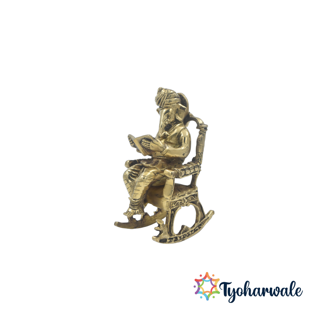 Add this Lord Ganesha brass statue to your spiritual collection today. Let this Ganpati sitting on rocking chair brass idol bless your home with peace, prosperity, and auspicious energy — the perfect companion for every festive celebration and daily prayer ritual.