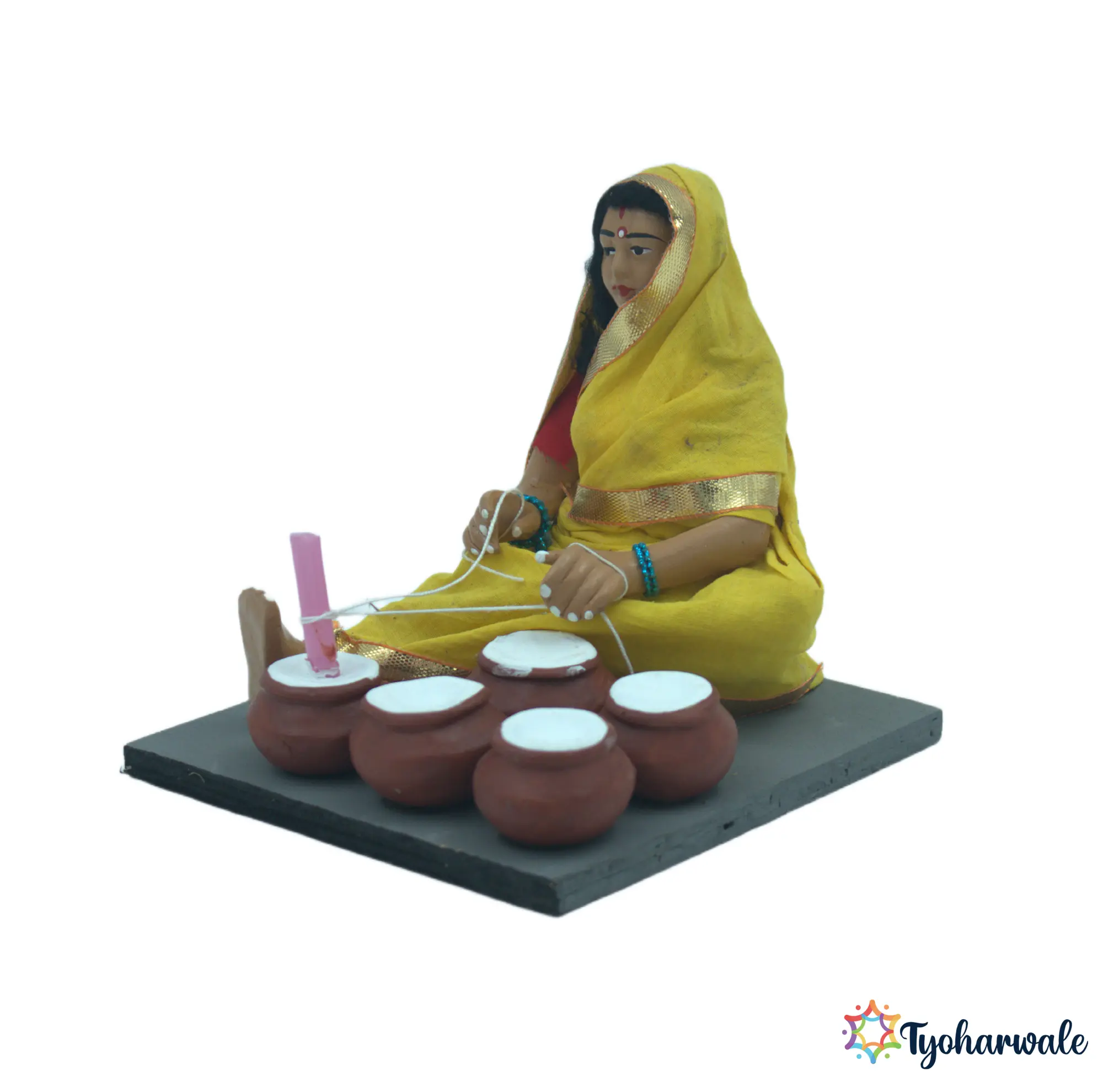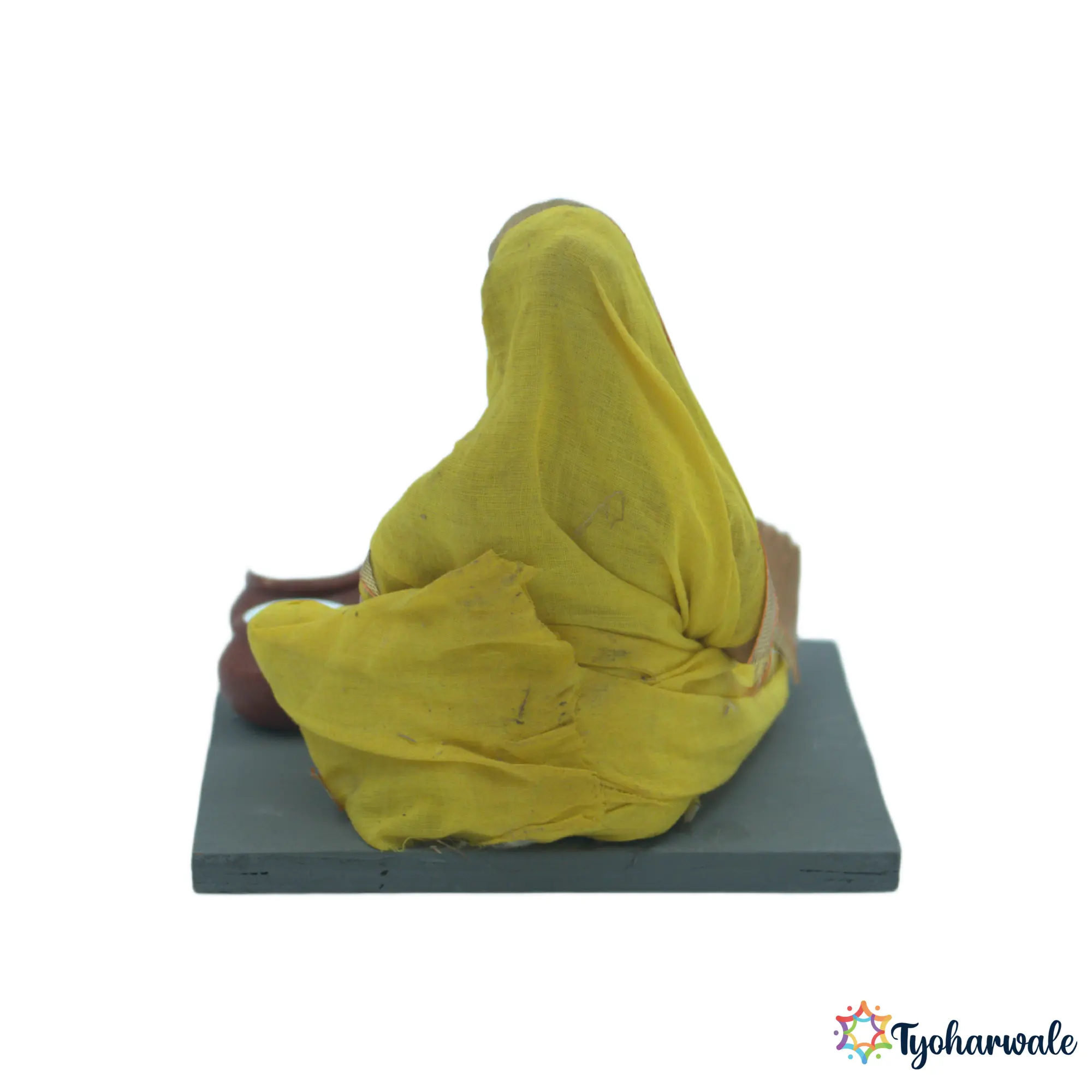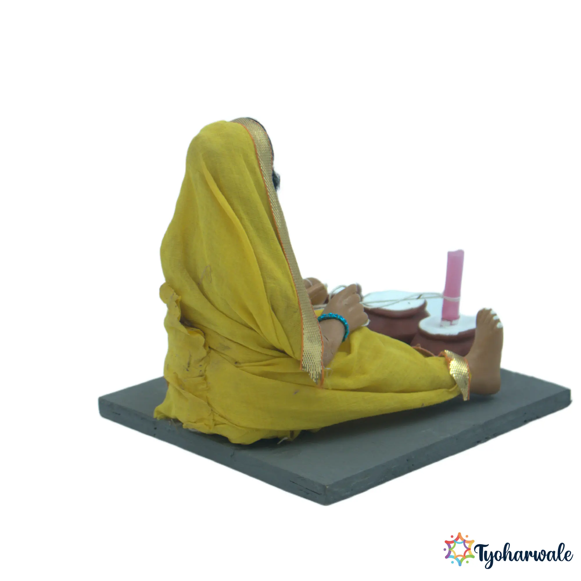 This gavalan (गवळण) murti represents a traditional village woman and is used in wedding rukhwat displays. It symbolises rural life, daily livelihood, and cultural traditions associated with Indian households.