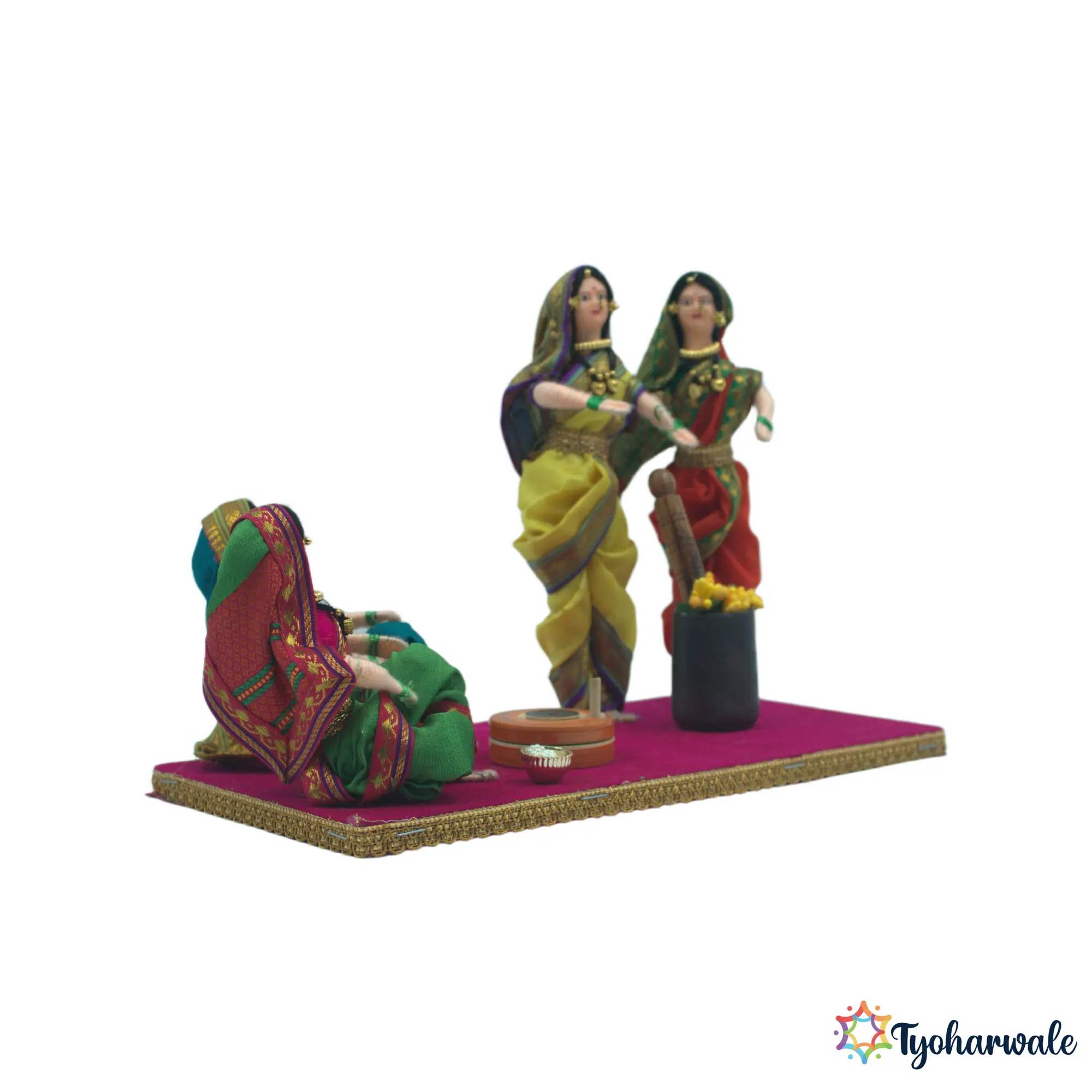 Families arranging marathi wedding decoration setups often include such scenes to create a display that reflects tradition while remaining visually engaging for guests. It works effectively as a marriage ceremony decoration for haldi functions, pre-wedding rituals, or complete rukwat presentations. Those searching for wedding display items for maharashtrian marriage appreciate figurines like this for their cultural relevance and their ability to complete a traditional ceremonial arrangement.