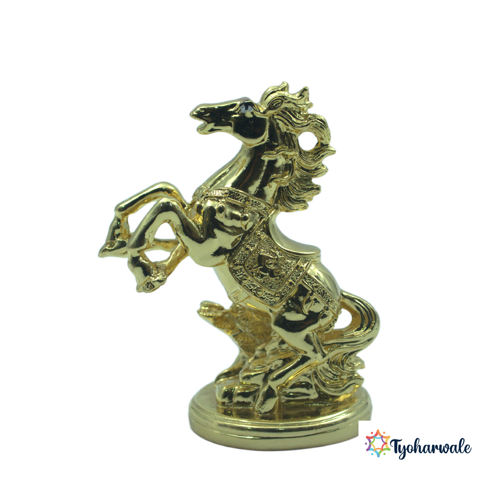 The Gold Plated Galloping Horse Statue is used as a Vastu and decor element in homes and offices. It is commonly placed on desks, shelves, or living room units to represent movement and ambition. The statue suits workspaces and modern interiors where symbolic decor is preferred.