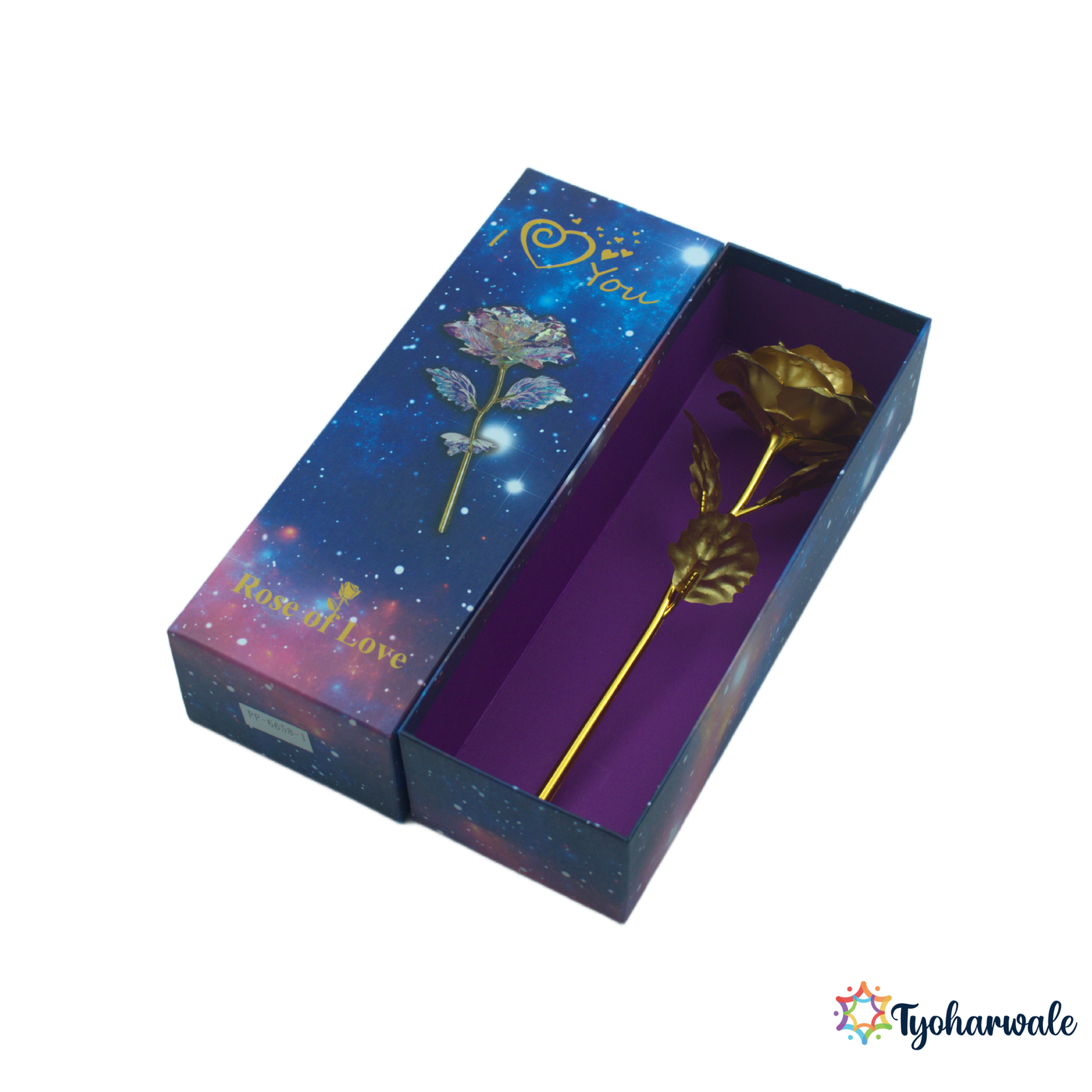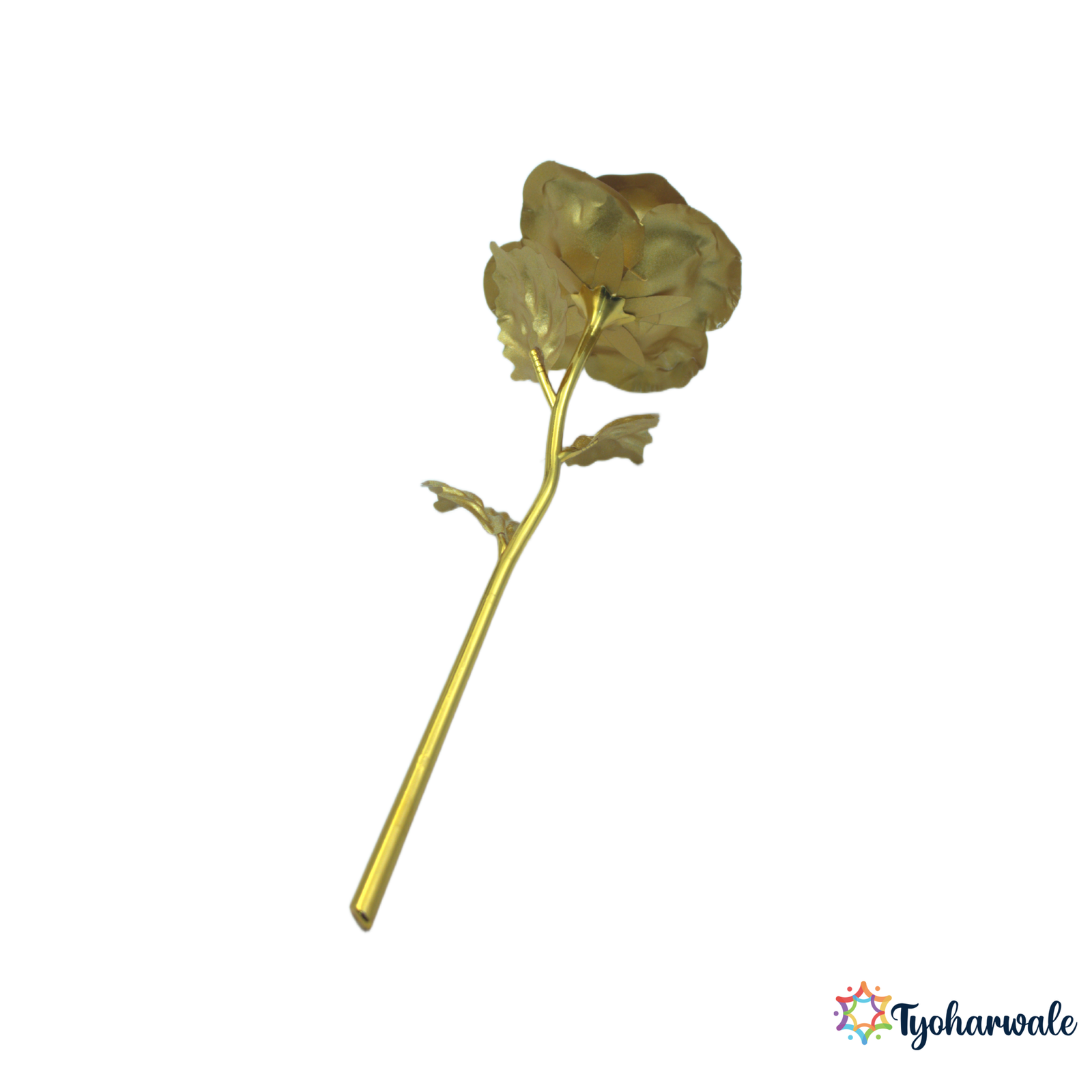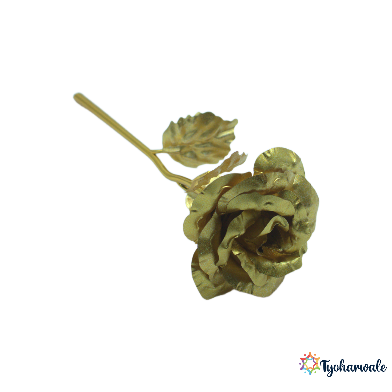 This gold-plated rose captures the form of a blooming flower in a decorative piece. It is commonly used as a keepsake for special occasions such as anniversaries, birthdays, and festive celebrations. The rose is suitable for placement in houses, offices, and display shelves where subtle elegance is preferred. Many people choose it as a gesture of appreciation or remembrance because it does not fade over time. Its refined appearance allows it to blend easily with both modern and traditional interiors, making it a versatile decor gift.