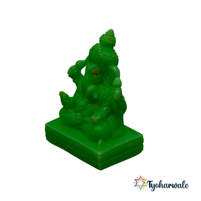 This artisan-made Ganesh ji murti features detailing, reflecting traditional Indian craftsmanship. Ideal for festive decor, spiritual meditation, or special gifting occasions such as Diwali, Ganesh Chaturthi or housewarming. It is believed that this Green Ganesha idol enhances positivity, harmony, and divine blessings and you can place it on living room shelves, study tables, office workstations, or car dashboards to bring spiritual energy and prosperity to your surroundings.