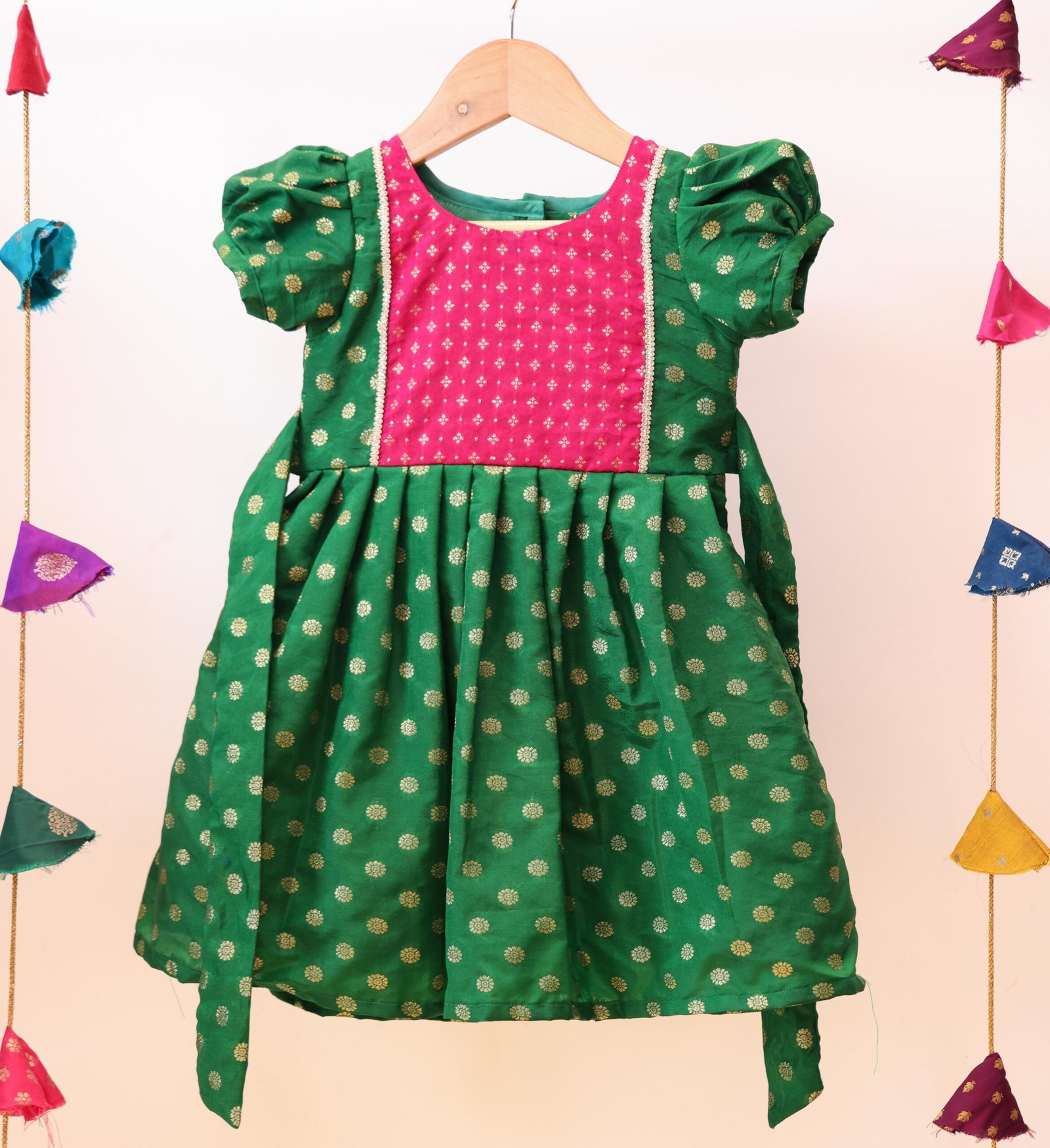 Green Silk Balloon Sleeves Frock