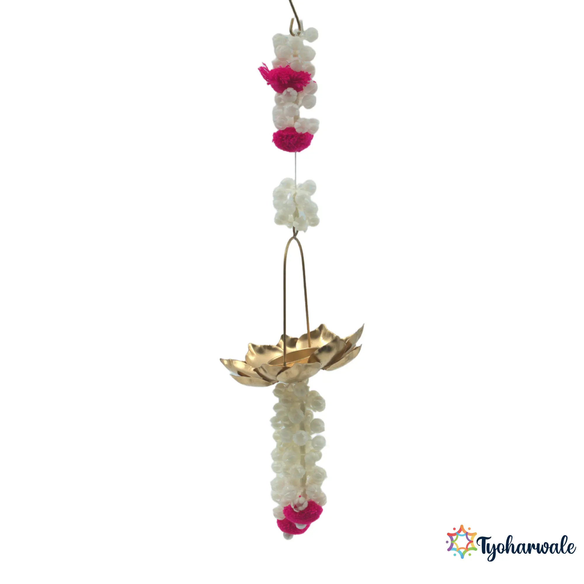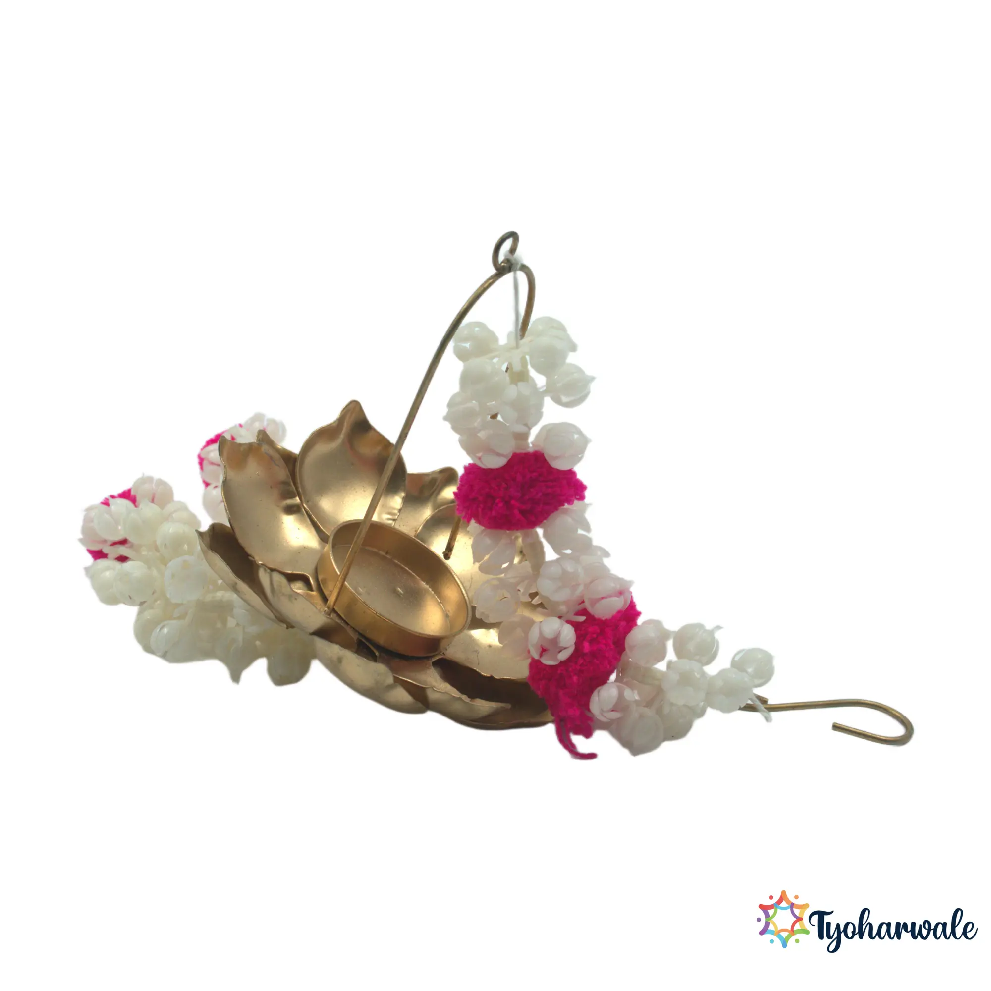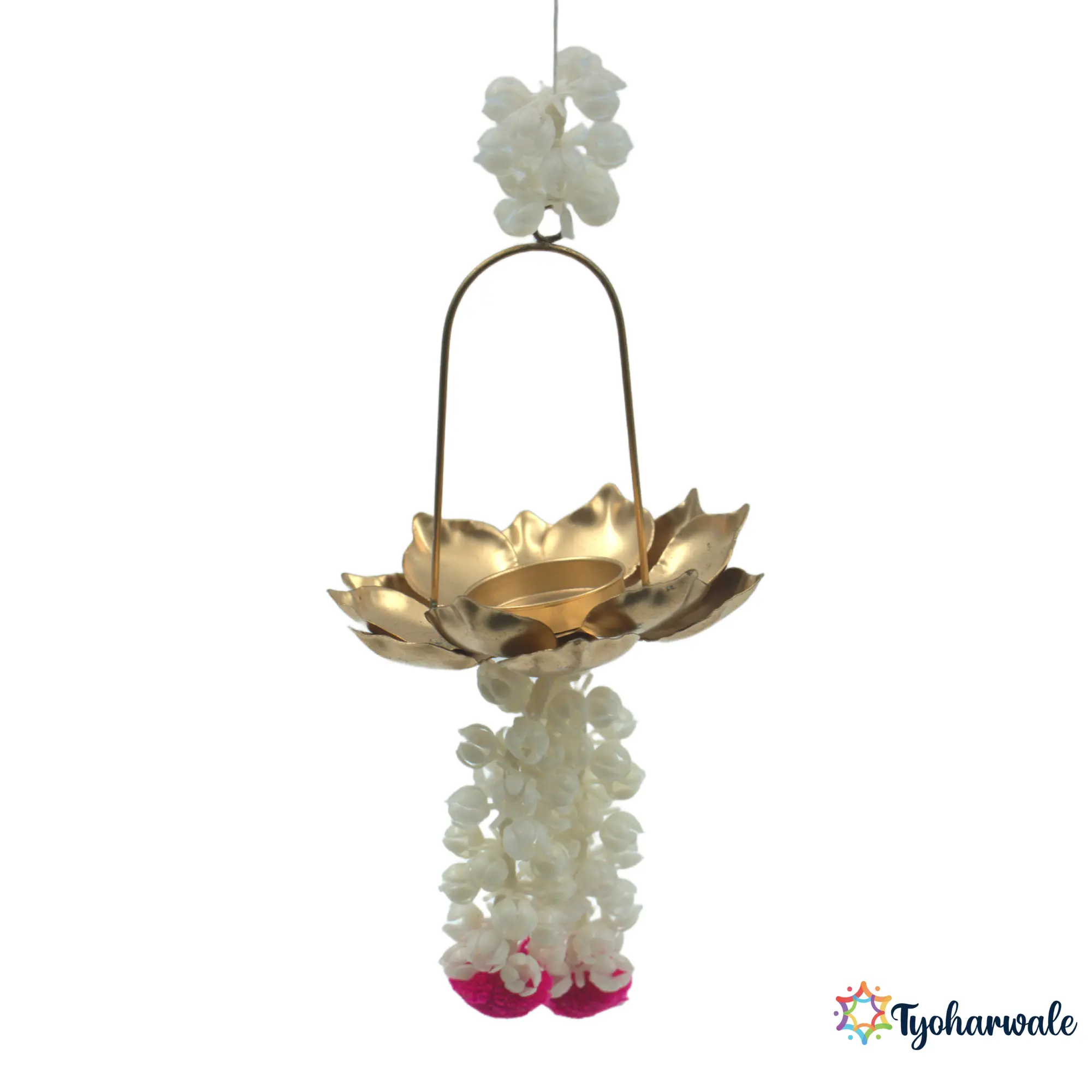 Hanging Tealight with Gajra | Decorative Festive Hanging Tealight Candle Holder | For Home, Office, and Mandir Decor |