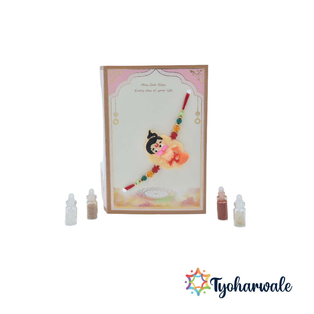 This Hanuman cartoon Rakhi is a mix of tradition and playfulness, now available at Tyoharwale. Its cute cartoon design is which your younger sibling would love to wear on this Rakshabandhan day. We also have every fancy or designer rakhi that you will like. If you’re thinking of Rakshabandhan kab ka hai, it’s time to choose the perfect raakhi online only at Tyoharwale.