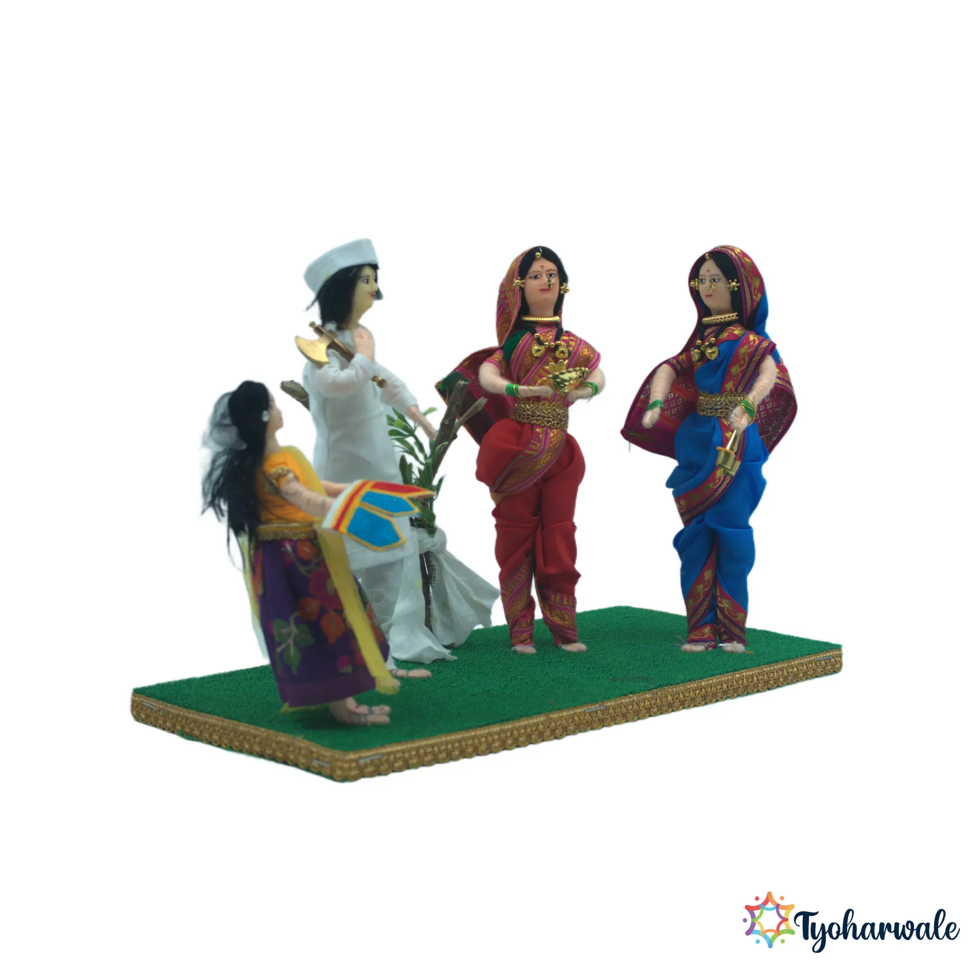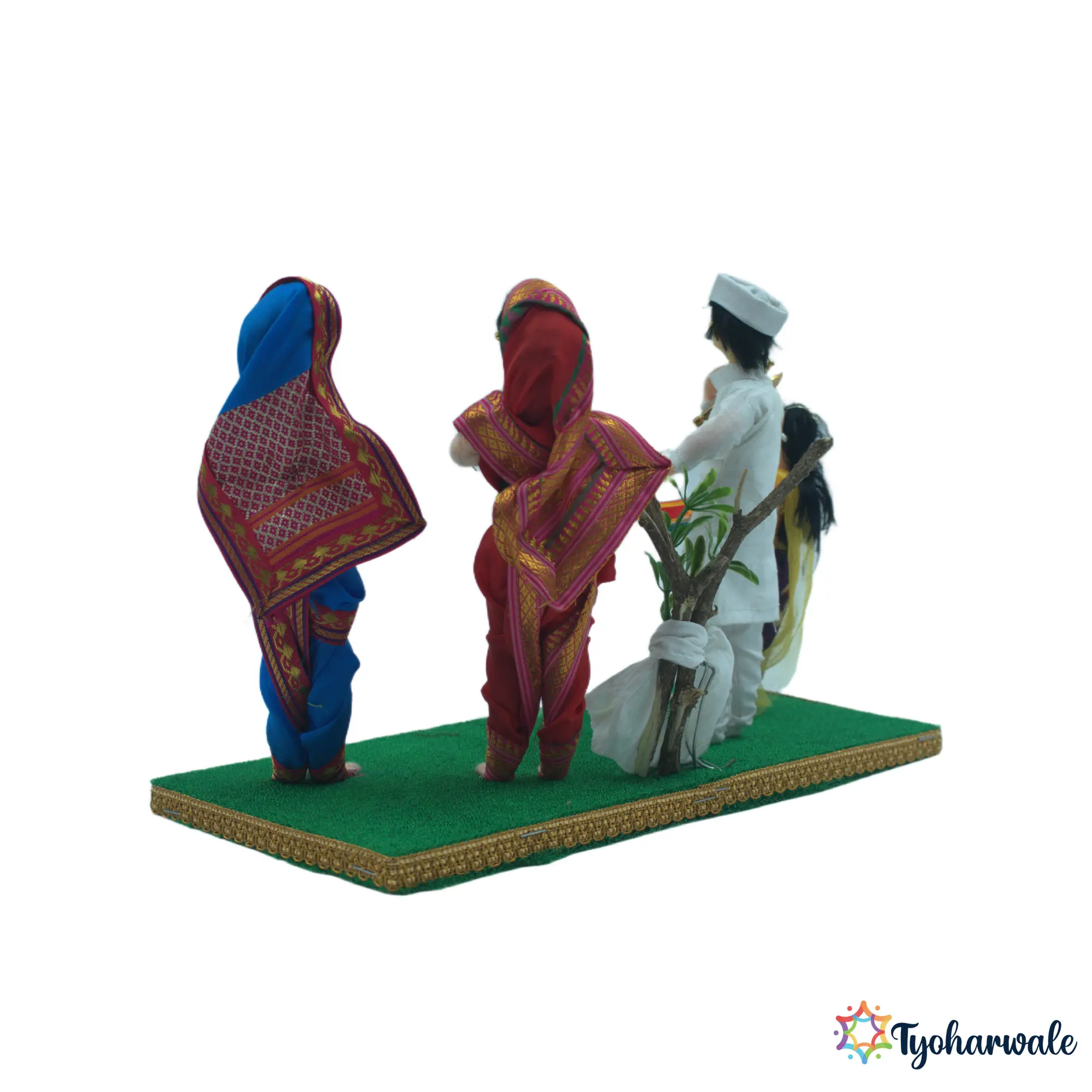 The Jagran Gondhal setup for wedding rukhwat reflects a deep-rooted ritual of faith, where music and prayer come together to protect and bless the new couple. As one of the most culturally rich Maharashtrian wedding rukhwat items, it symbolizes the family’s devotion and the invitation of divine grace into the household. This miniature serves as a perfect example of traditional Marathi wedding decor, adding spiritual depth and character to the display without being loud. It allows the family to showcase the culture and the importance of ancestral blessings in a respectful, artistic way.