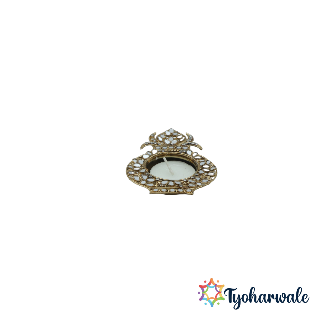 Shop the Kalash Metal Diya with Mirror Work at Tyoharwale, your trusted online store for handcrafted diyas, mirror work lamps, decorative pooja lamps, traditional festive decor, Diwali essentials, temple decor, wedding pooja decor, spiritual gifts, and home decor accessories.
