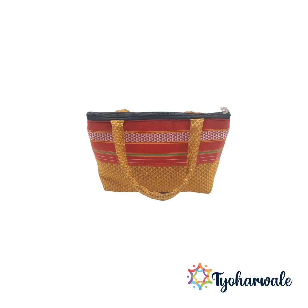 This Baby Bag, beautifully made from premium Khun material that blends cultural charm with modern practicality. This traditional baby bag is designed to complement every festive outfit, making it a festival pouch bag for women and girls. Whether carried to a puja, worn as a wedding bag, or used for gifting during Diwali, this handcrafted bag is great for traditional look in this festive season.