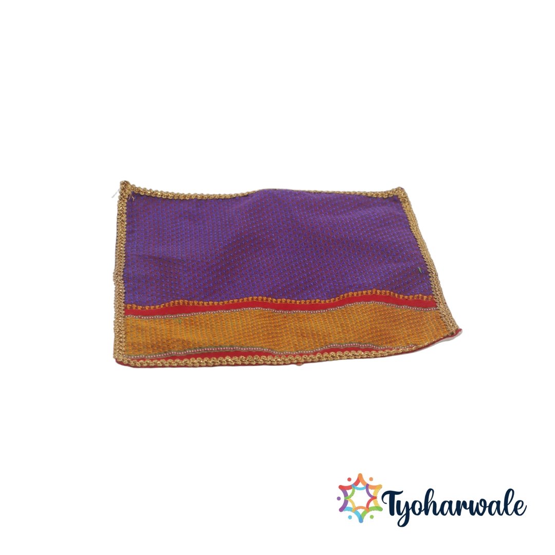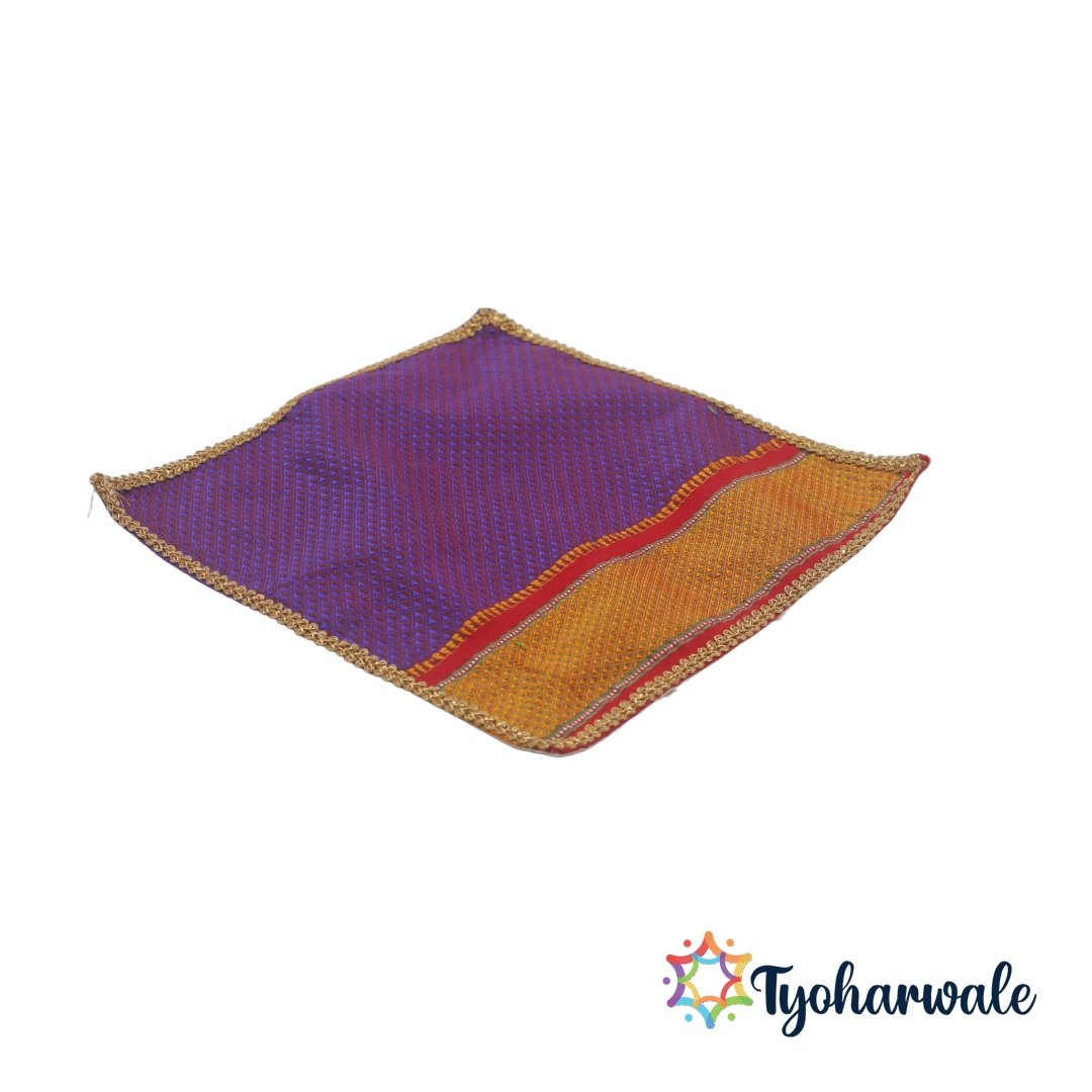Perfect for daily rituals, bhajan gatherings, or festival ceremonies, the Khan Asan serves as a versatile temple mat and mandir seat cloth. The beautiful brocade weave and vibrant colours make it ideal as an Asan for Pooja, Festival Asan Mat, or Pooja Asan Cover. Lightweight, durable, and easy to maintain, this Khun Asan blends comfort and tradition effortlessly. The golden border and fine detailing enhance its festive appeal, making it suitable for housewarming, wedding ceremonies, or spiritual gifting. Each Khan Asan is a symbol of devotion, artistry, and timeless tradition. This Asan cloth is designed for both compact and elaborate pooja arrangements.