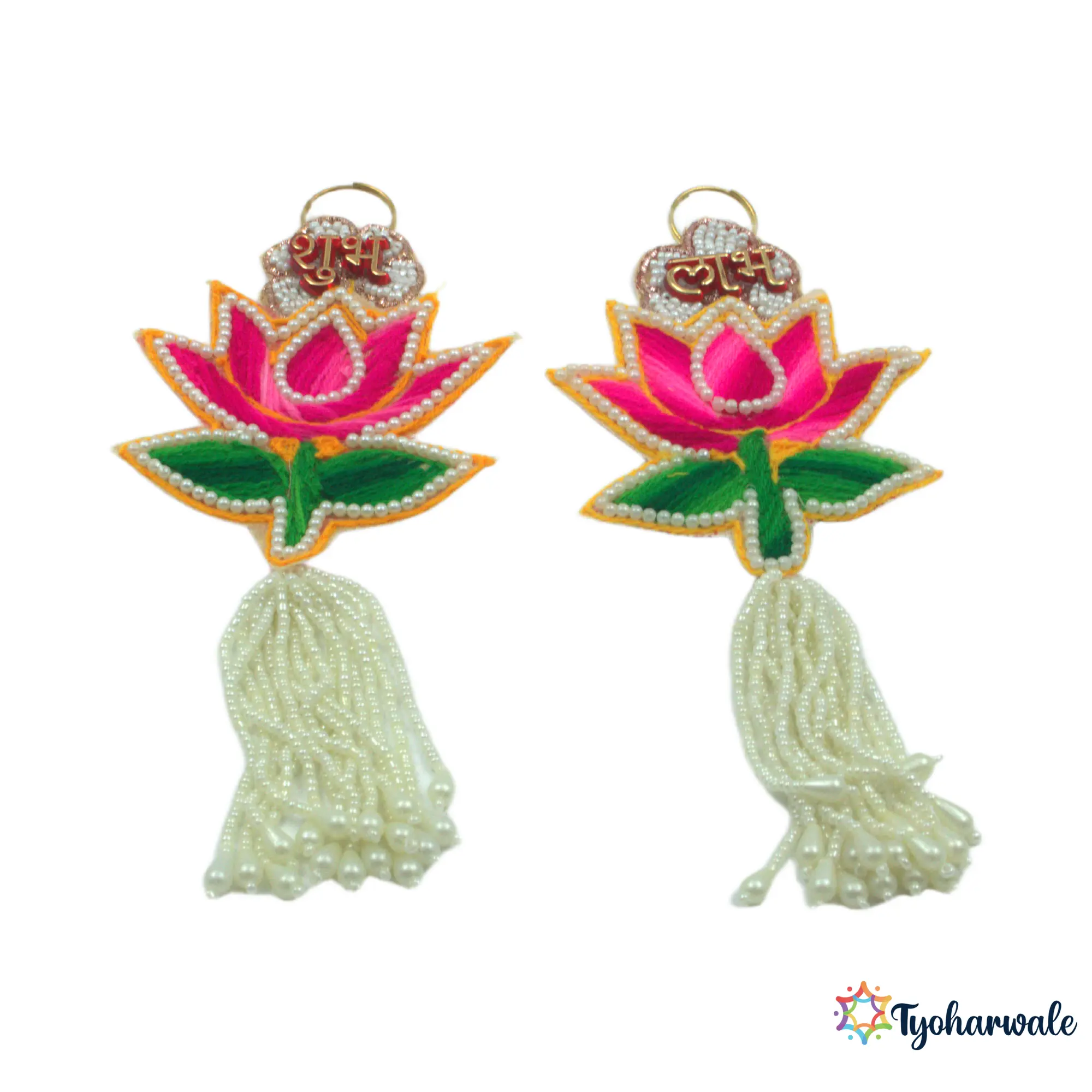 Lotus Shubh Labh Door Hanging Set of 2 | Traditional Latkan Decor for Home Entrance & Pooja Room | For Diwali & Festive Decoration | (Sold by: Pooja's Giftt Hive)