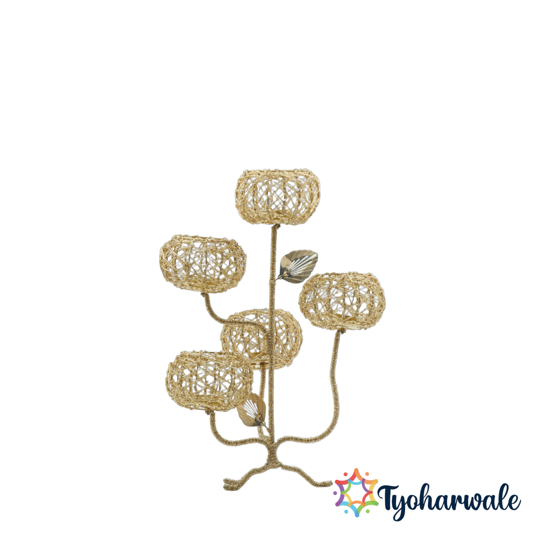 Crystal 5 bowl diya | Handcrafted Decorative Diya for Diwali, Weddings, Pooja Ghar decoration, Rangoli & Festive Home Decor |