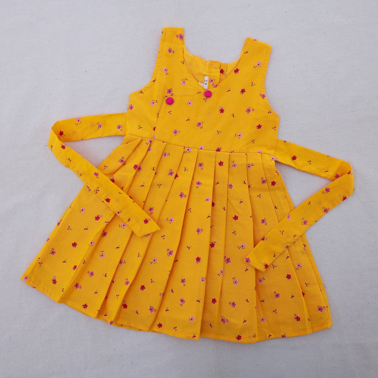 Mango Yellow Overlap Pattern with Cotton Lining Frock