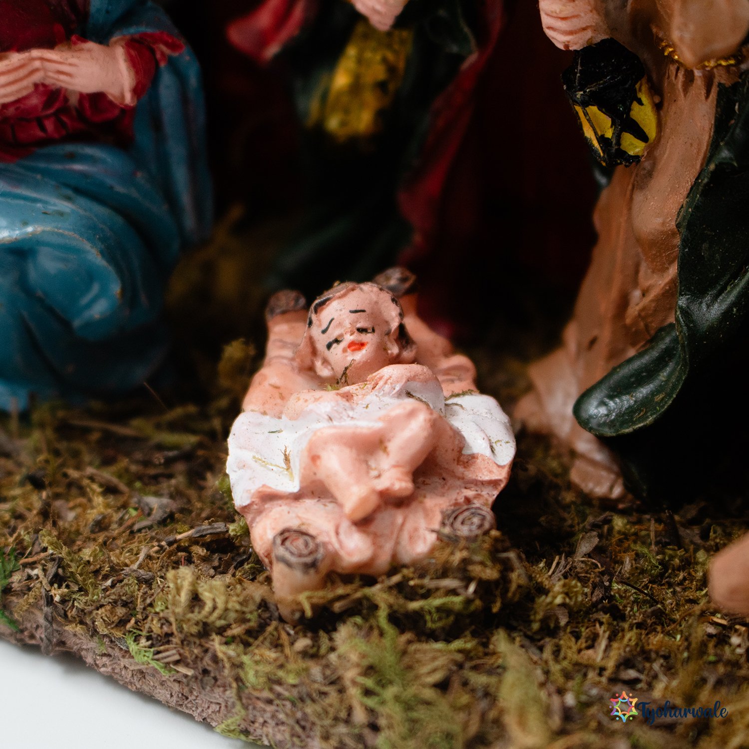 Place this beautiful crib set under the Christmas tree to create the perfect Xmas decoration. The miniature detailing of the Holy Family scene features Baby Jesus, Mary, Joseph, the Three Wise Men, and animals. A crib set that depicts the birth of Jesus Christ. This nativity set makes a lovely centerpiece for a Christmas celebration. This Xmas crib decoration adds a traditional Christmas vibe and can be showcased on tabletops, mantels, and in living rooms to create a peaceful and holy ambiance.