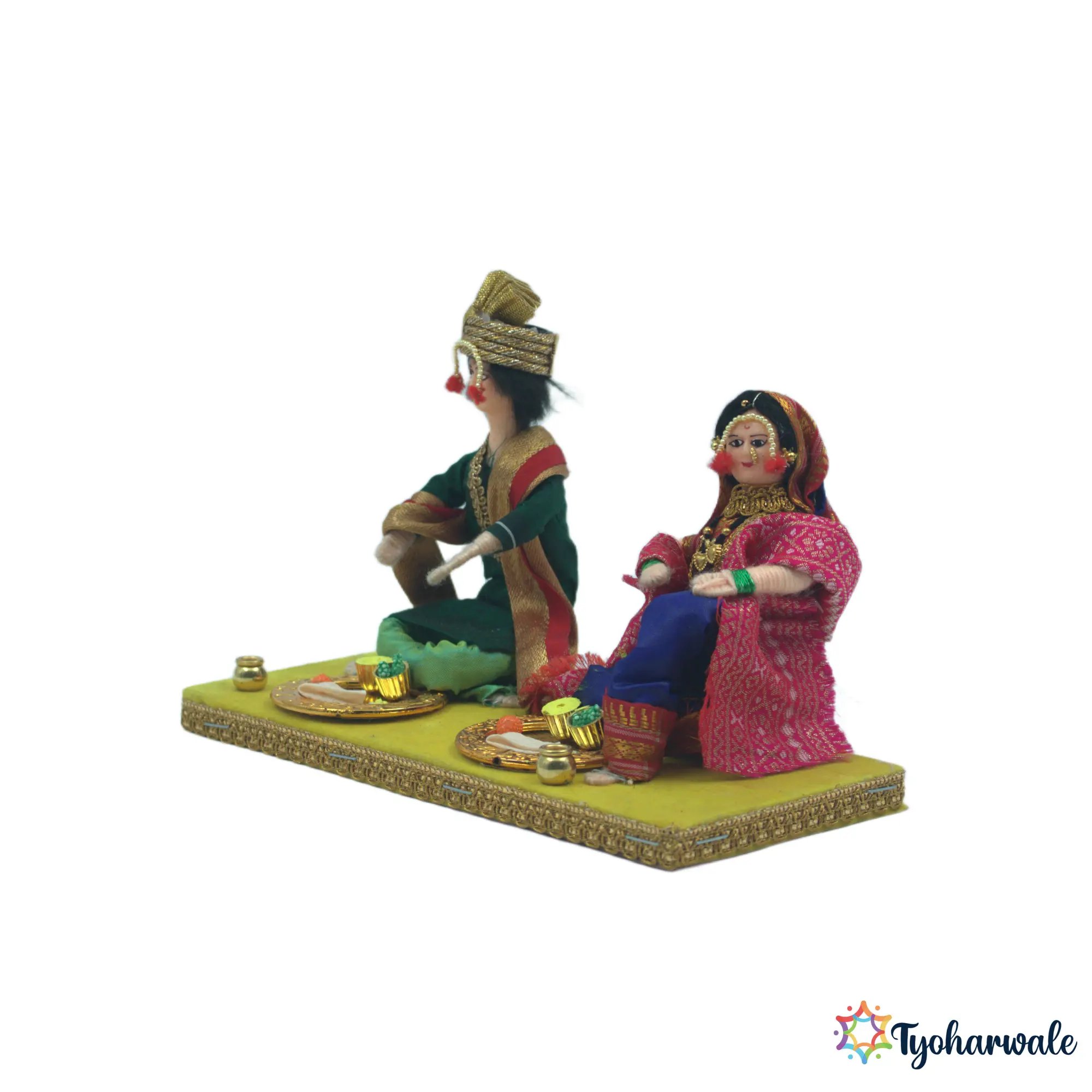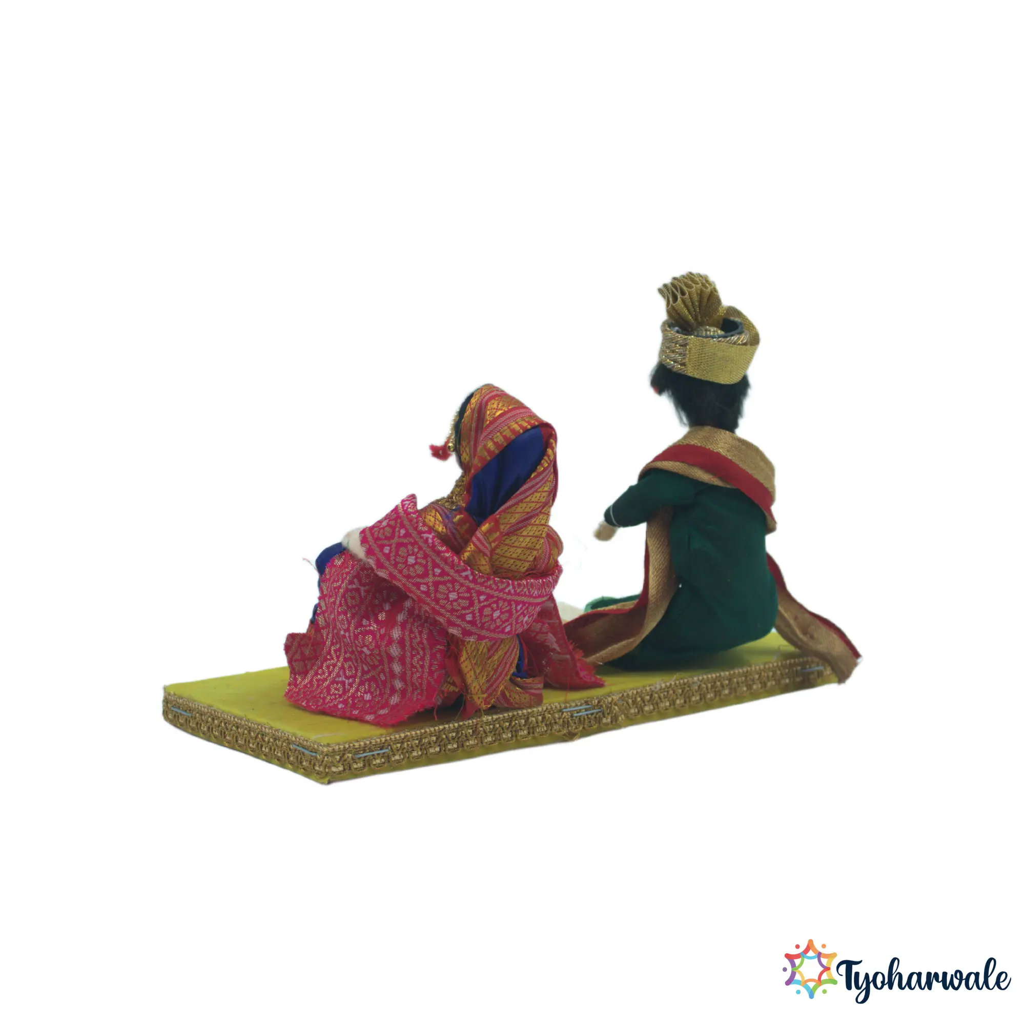 Navara Navari Eating Setup Miniature for Rukhwat (नवरानवरी - जेवण) | navara navari figurine | traditional wedding decor Couple Miniature (Sold by: Jadhav bandhu Rukhwatwale)