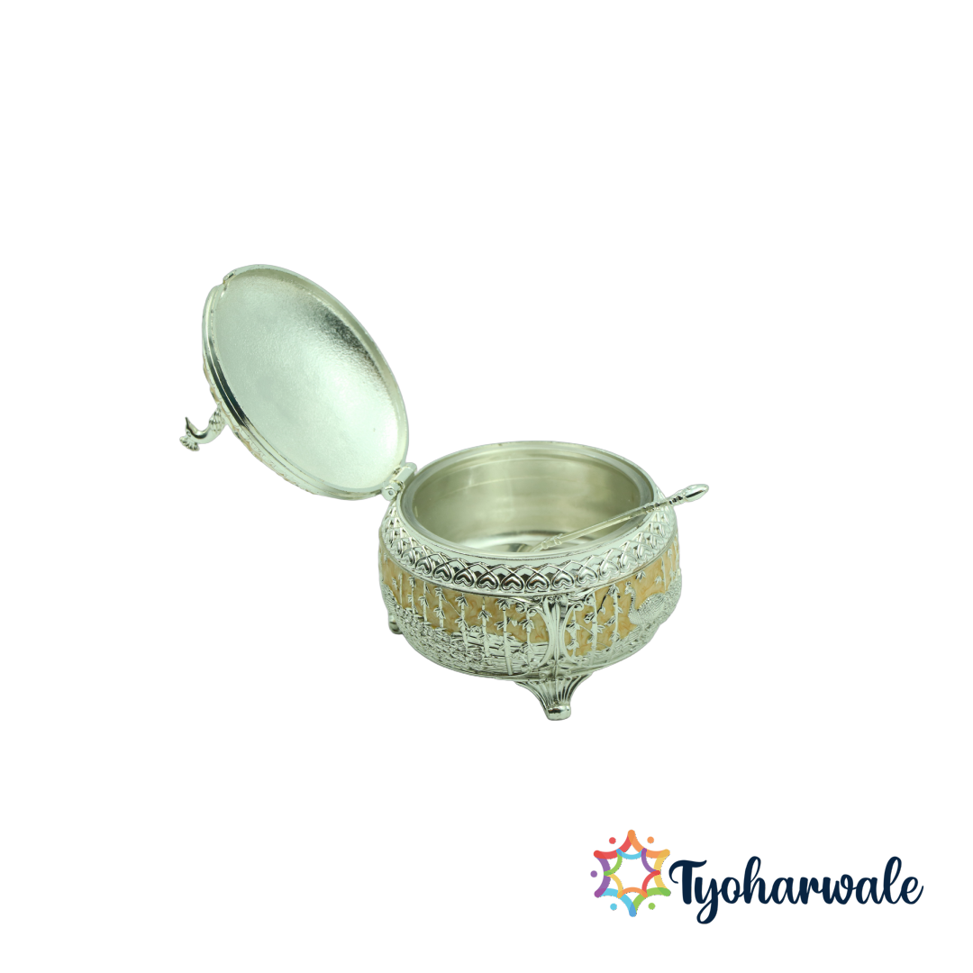 Buy the peacock yellow circular mukhwas container in Mumbai for vibrant Diwali decorations, festive gifting, and home organization. Shop in Delhi for weddings, pooja arrangements, and cultural ceremonies. Order in Bangalore to add elegance to pooja rooms, gift hampers, and traditional décor. Get it in Chennai for housewarming gifts, Diwali pooja décor, and wedding favor sets. Purchase in Hyderabad for festive celebrations, gifting, and home décor styling. Buy in Kolkata to enhance ceremonial decorations, traditional gifting, and pooja room embellishments. Shop in Pune for organized gifting, festive arrangements, and Diwali decoration purposes. Order in Ahmedabad for cultural festivals, ceremonial displays, and elegant pooja decor.