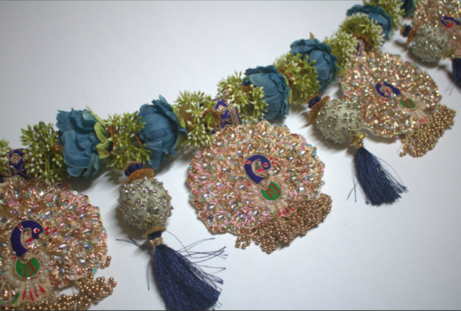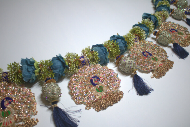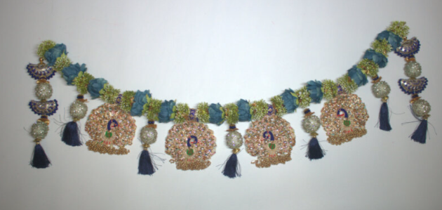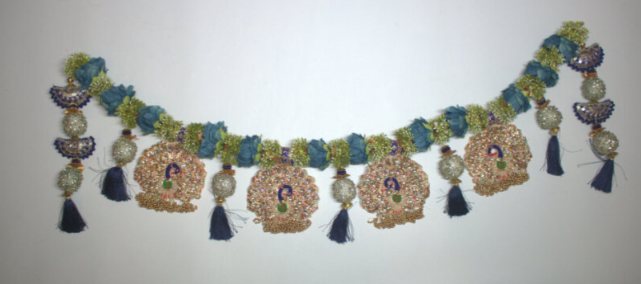 Bring the majestic charm of peacocks to your doorway with this Peacock Toran with Blue, a vibrant blend of tradition and artistry. Perfect for festive home décor, Diwali celebrations, wedding entrances, Navratri pooja setups, and temple decoration, this toran instantly adds a touch of elegance and cultural richness. Its intricate peacock motif paired with deep blue accents creates a stunning focal point for any entrance, mandir, or pooja room. This handcrafted bandarwal features exquisite detailing, from sequins to beads, capturing the grace and vibrancy of the peacock. Designed as a latkan toran or decorative door hanging, it works beautifully on main doors, windows, balconies, and even outdoor spaces.