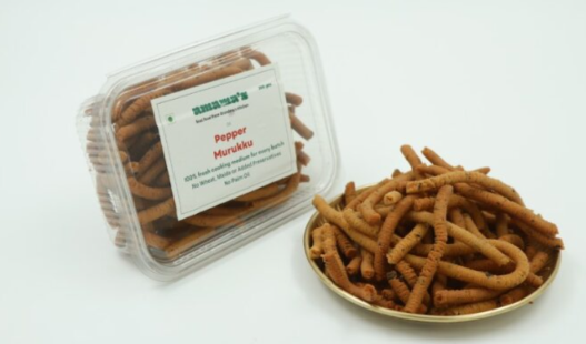 Pepper Murukku is a flavorful South Indian snack made from rice flour. This homemade murukku, also called Milagu Murukku, offers a delightful balance of spice and crunch with every bite. Loved as a light tea-time snack, festival special murukku, or an accompaniment during family gatherings, it’s a South Indian murukku. With an easy murukku recipe and convenient ordering options, Pepper Murukku near me searches have become simple, bringing the joy of crispy and savory chakli sticks right to your home.