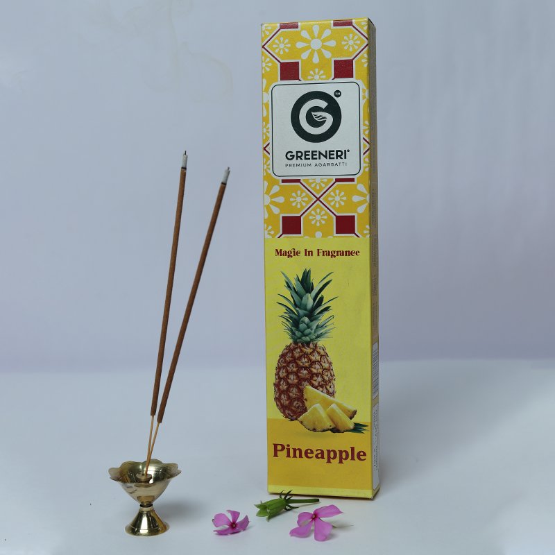 Immerse yourself in the smell of Pineapple incense sticks the harmonious blend of tradition and freshness with our Incense Sticks – Greeneri Agarbatti, Pineapple comfort incense sticks.This incense sticks are Perfect as a thoughtful gift or a treat for yourself, these incense sticks will transform your space into a haven of peace and tranquility. Shop now for our incense stick from Tyoharwale.
