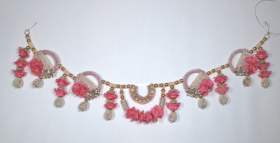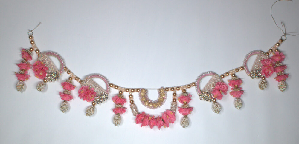 Shop the Pink Toranam with Floral and Kundan Work at Tyoharwale, your trusted source for handcrafted torans, pink door hangings, floral and kundan decorative torans, festive home décor, bandarwals, latkan hangings, pooja room decorations, wedding décor accessories, Diwali essentials, and traditional Indian celebration décor.