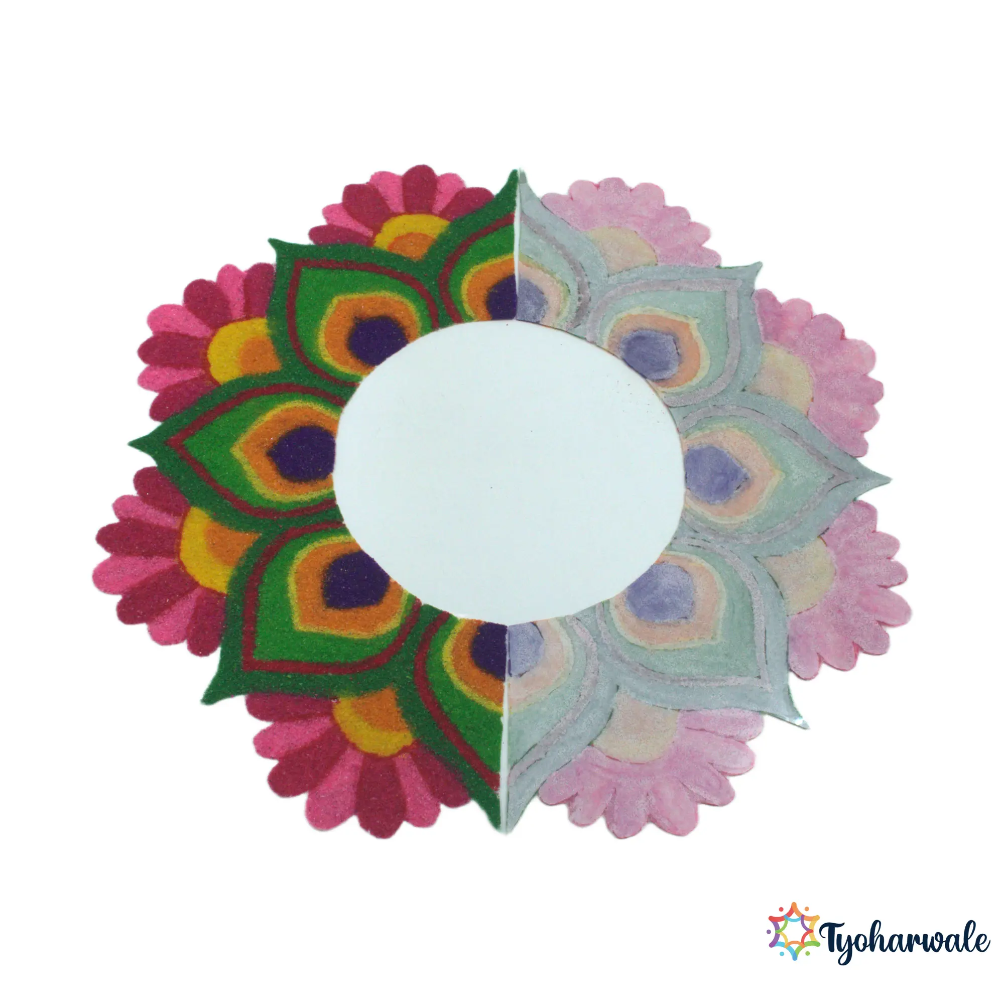 Rangoli Design for Home Decoration | Peacock Style Motif | Handmade Rangoli Decoration for Diwali, Events, Entrance & Temple |