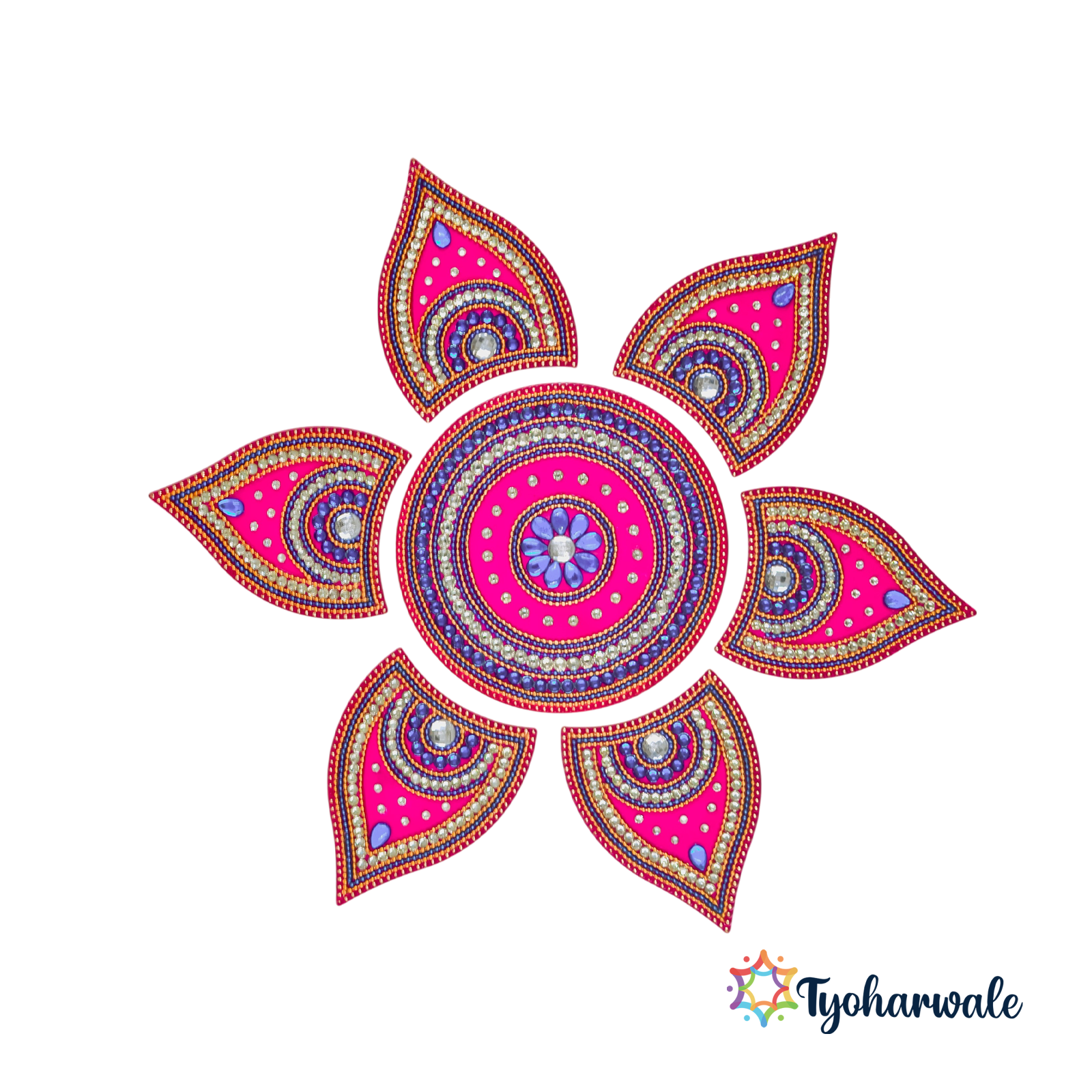 Buy Reusable Rangoli Sticker in Mumbai for home entrance and Diwali decoration. Shop Colorful Stone Work Acrylic Rangoli in Delhi for pooja room and festive décor. Order Ready-made Kundan Rangoli in Bangalore for wedding mandap and stage decoration. Purchase Acrylic Rangoli in Chennai for housewarming ceremonies and festive celebrations. Get Luxury Kundan Rangoli in Hyderabad, Kolkata, Pune, and Ahmedabad to enhance home décor, office spaces, and traditional Indian celebrations.