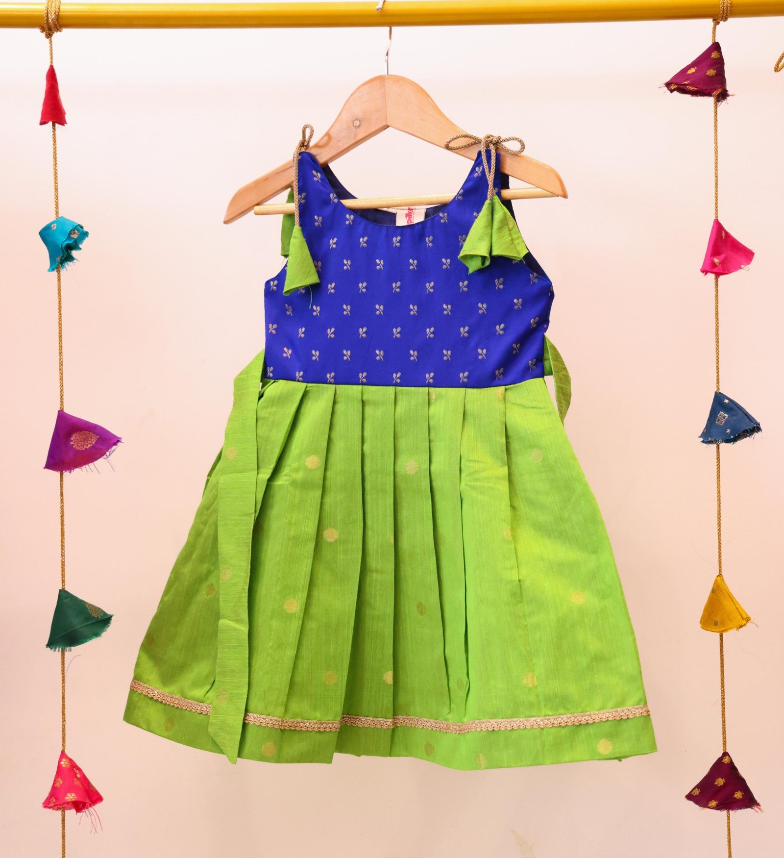 Royal Blue and Parrot Green Shoulder Knot Frock