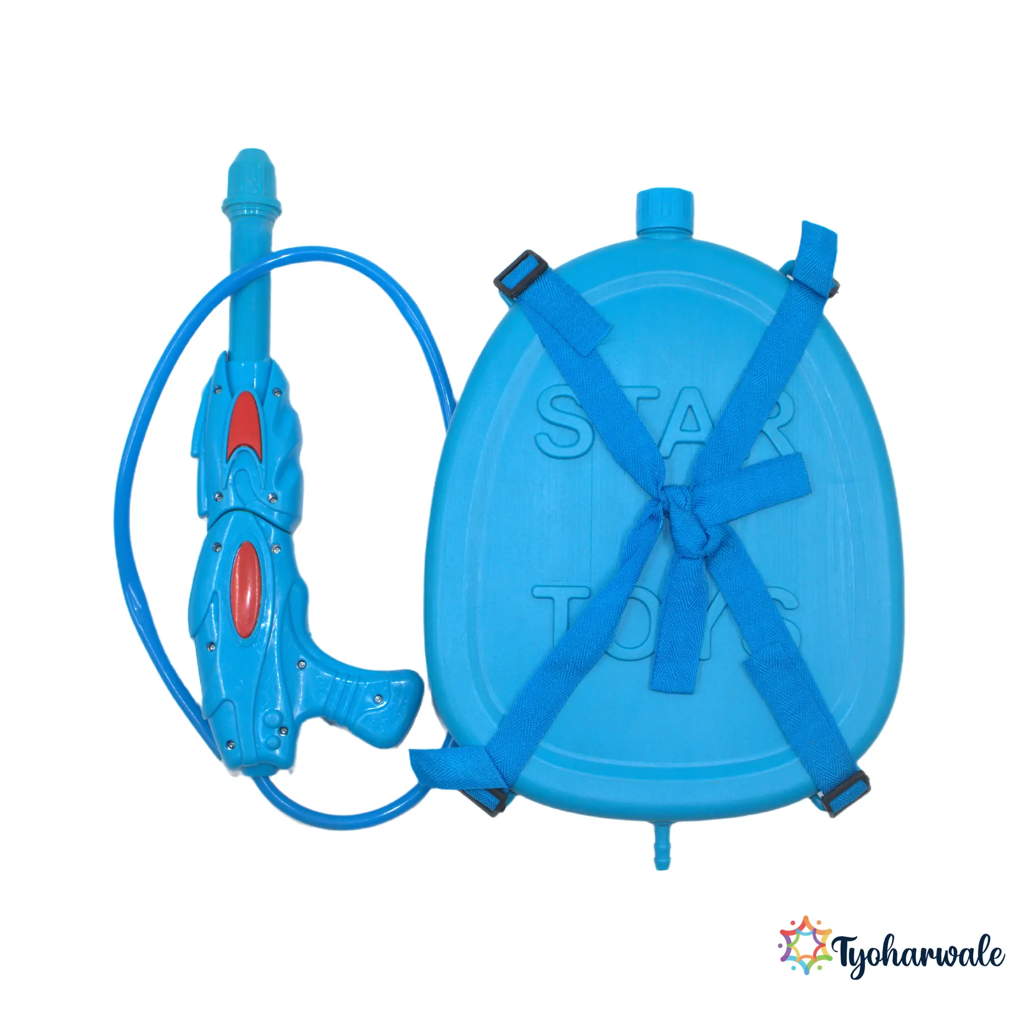 A bold shield-themed backpack, a water tank gun designed for lively Holi celebrations. Supports extended outdoor water play with fewer refills.