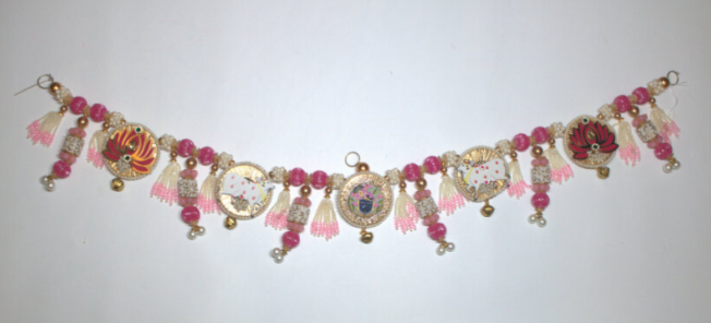 The soft pink color symbolizes love, compassion, and harmony, bringing a serene yet vibrant ambiance to your home. Use this decorative pink toran during Lakshmi-Ganesh pooja, Diwali night celebrations, wedding ceremonies, Navratri garba nights, or griha pravesh rituals, and elevate the festive spirit of your space. Pair it with rangoli designs, diyas, flower garlands, and other decorative accents to create a holistic and joyous atmosphere. This toran also makes a thoughtful and meaningful gift for friends and family. Perfect for Diwali gifting, wedding presents, housewarming gifts, or festive hampers, it combines aesthetic appeal with cultural significance. Lightweight and durable, it is easy to hang, remove, and reuse, making it ideal for festival decorations, daily rituals, and seasonal décor alike.