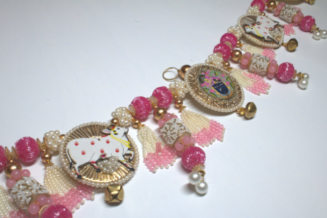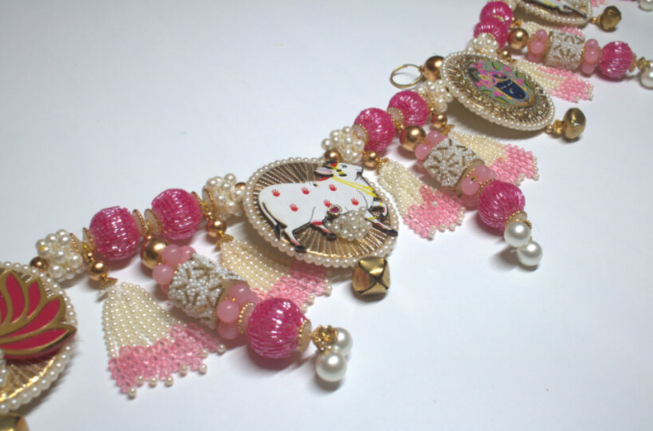 Shop the Shrinath Pink Toranam at Tyoharwale, your trusted platform for handcrafted torans, pink door hangings, bandarwals, festive home décor, entrance decorations, pooja room décor, latkan hangings, traditional Indian celebration accessories, temple décor, and Diwali essentials.