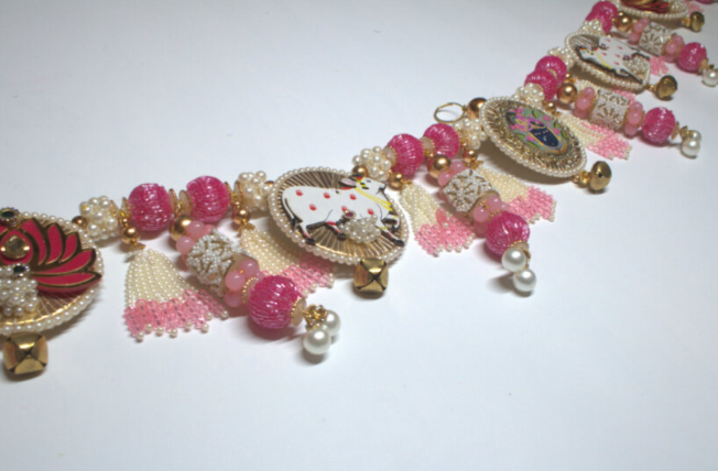 Shrinath Pink Floral Toran – Handcrafted Door Hanging for Diwali, Navratri, Weddings, Housewarming & Pooja Rooms