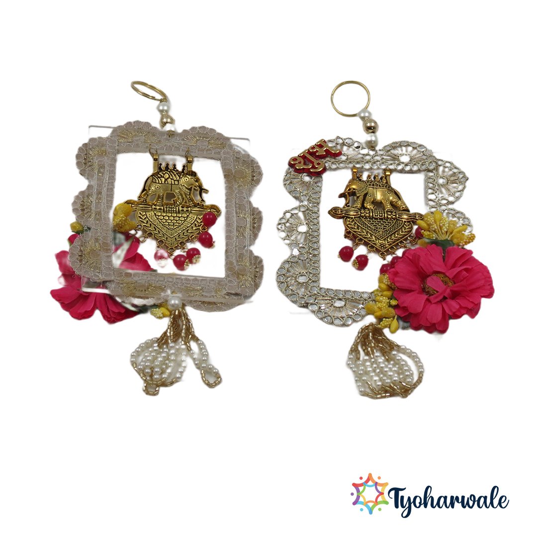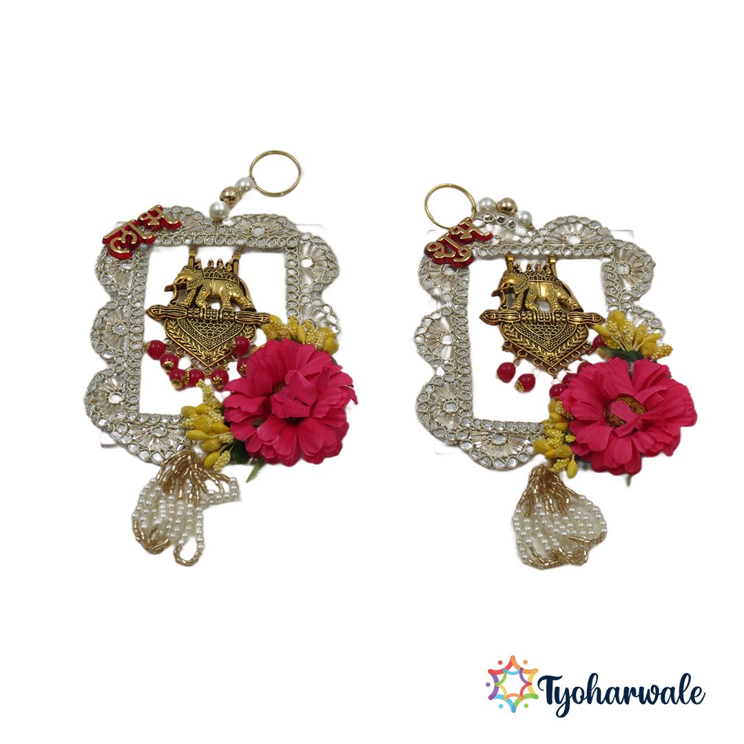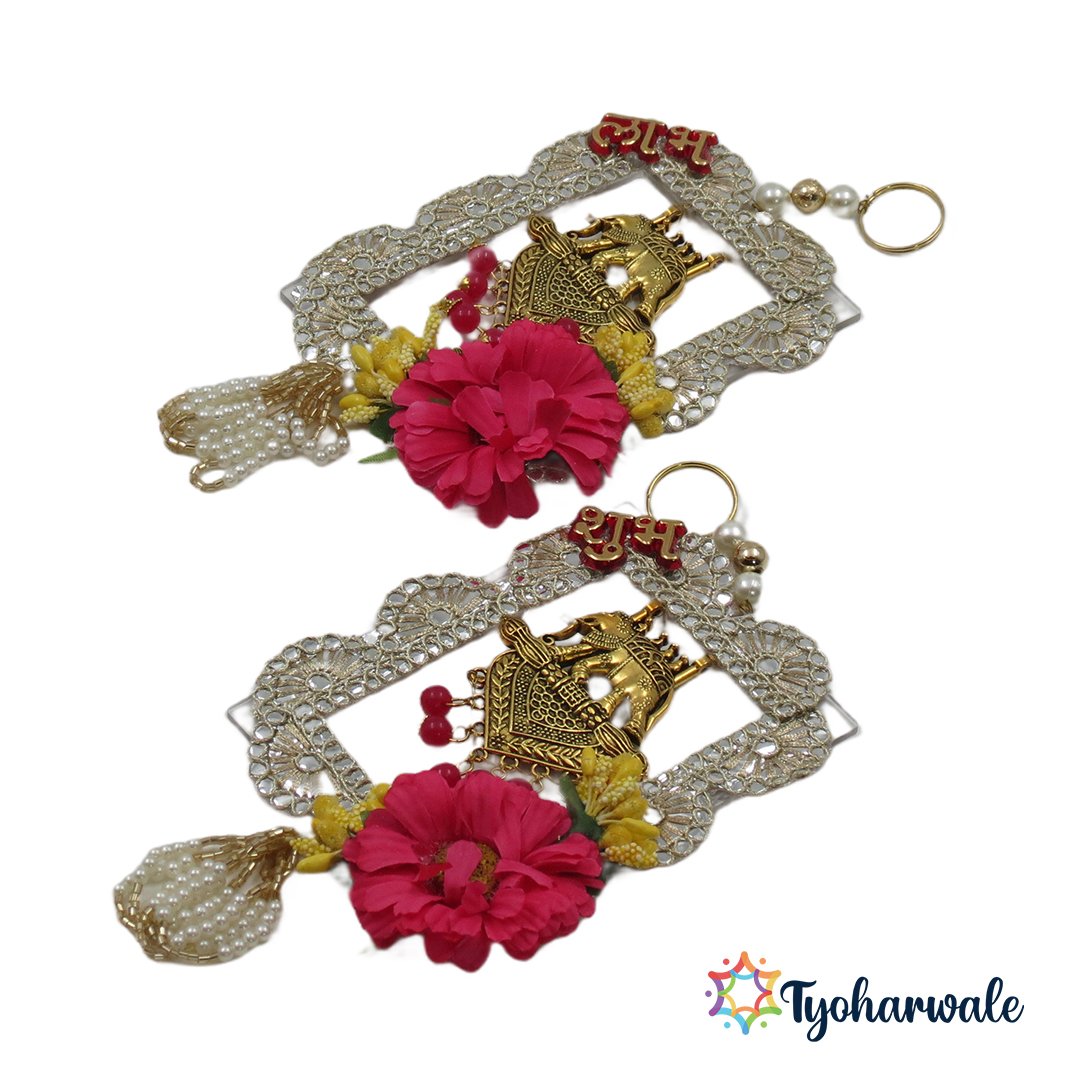 This Shubh Labh Hanging a decorative charm for Diwali decor, wedding decor, pooja room styling, festival home decor, temple doors and doorway décor.