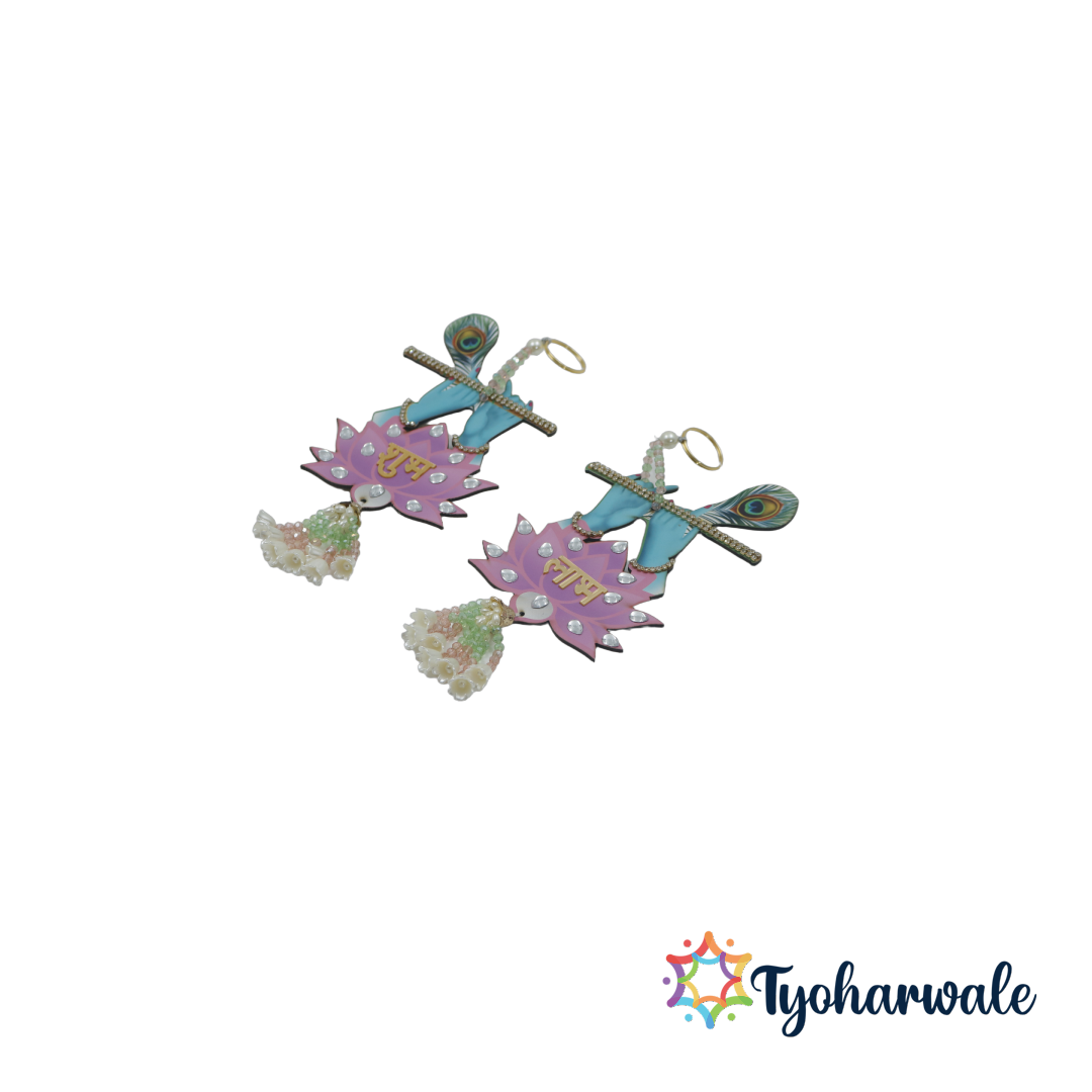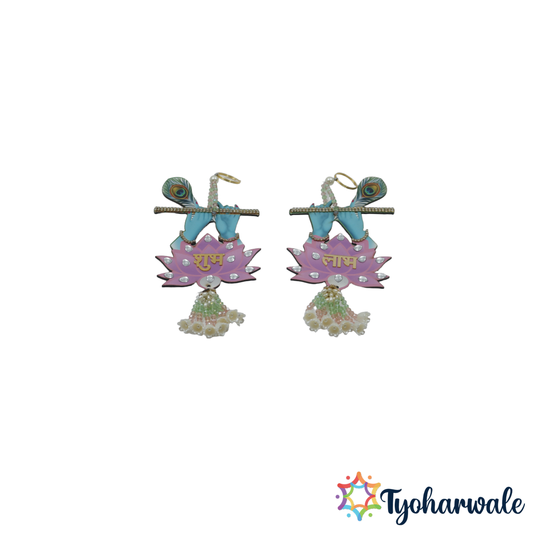 Shubh Labh Hanging with Bansuri | Decorative Wall and Door Ornament, Pooja Room Decor, Festival and Wedding Hanging |