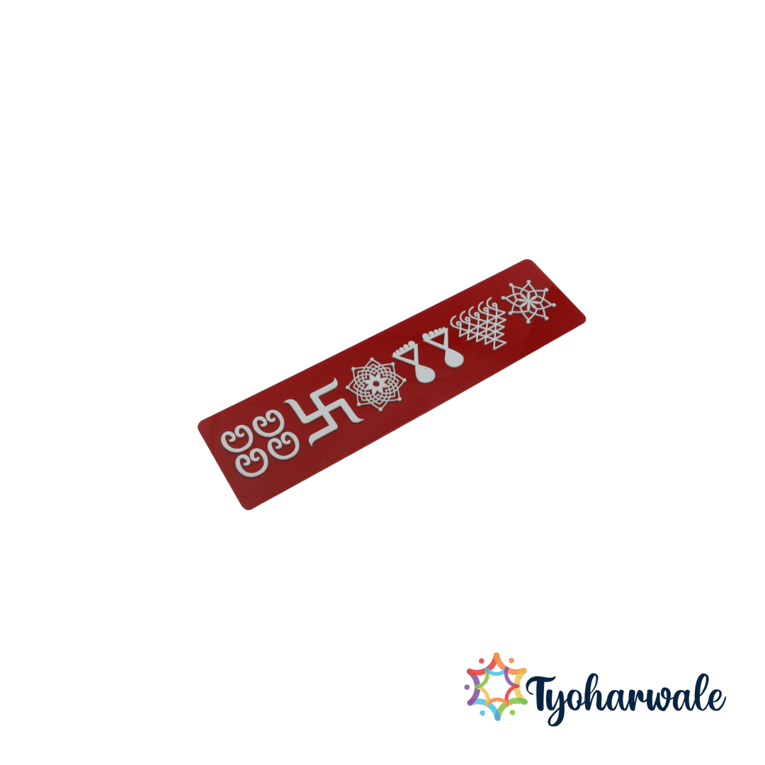 The Shubh Labh wall patti is designed for placement near main doors, prayer spaces, or temple areas within the home. The Swastik and Shubh Labh symbols hold traditional importance in Indian households and are often displayed during festivals and special rituals. This décor piece supports regular worship practices while also fitting into festive home arrangements. Its wall-mounted design allows easy positioning without disturbing existing décor, making it practical for apartments, houses, and workplace prayer areas.