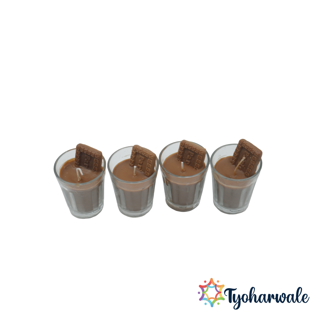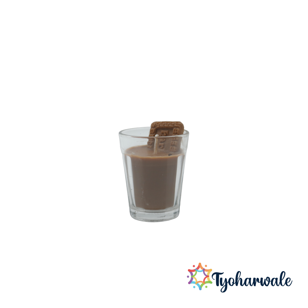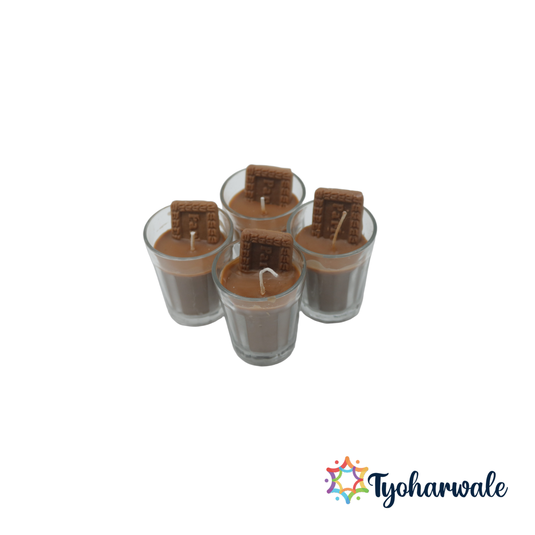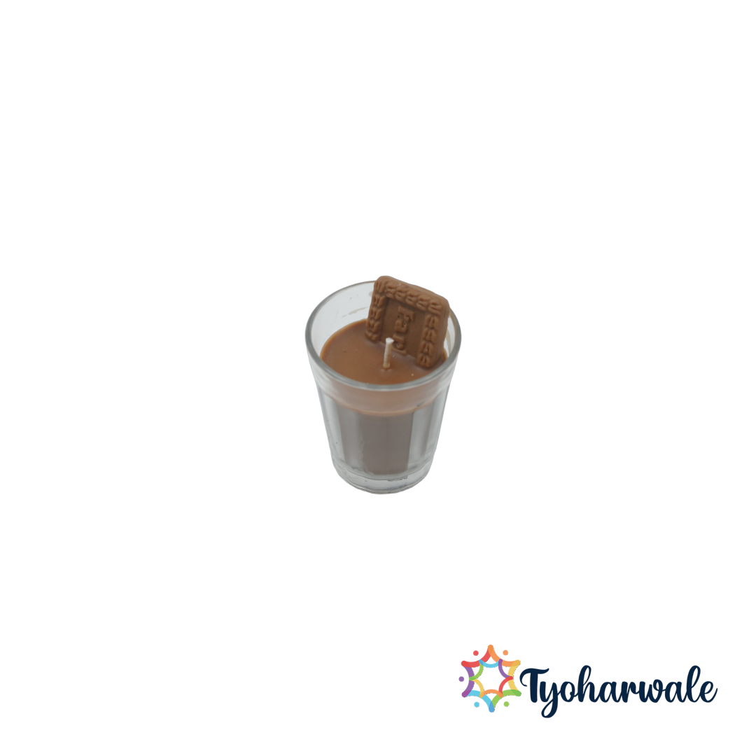 T Glass Candle Set of 2 | Parle-G Biscuit Candle in Cutting Chai Glass | Handmade Candle | Home Décor & Gift Candle