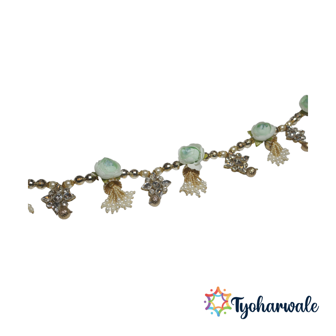 Shop the Simple Crystal Toran with Flower at Tyoharwale, your trusted source for handcrafted crystal torans, modern bandarwals, festive home decor, pooja room decorations, latkan torans, Diwali essentials, wedding décor accessories, and traditional celebration decor.