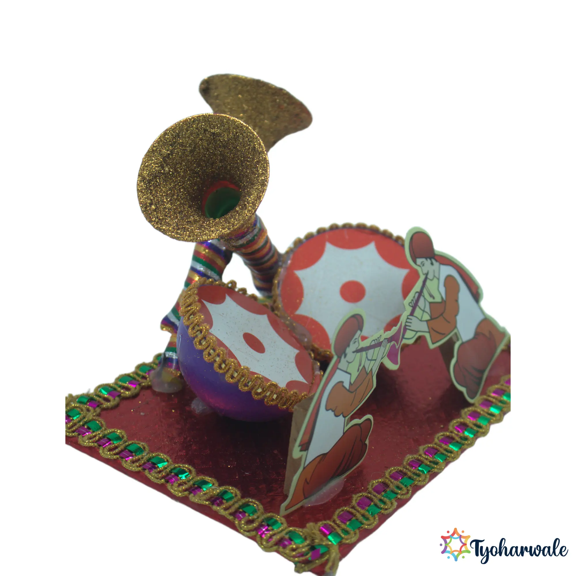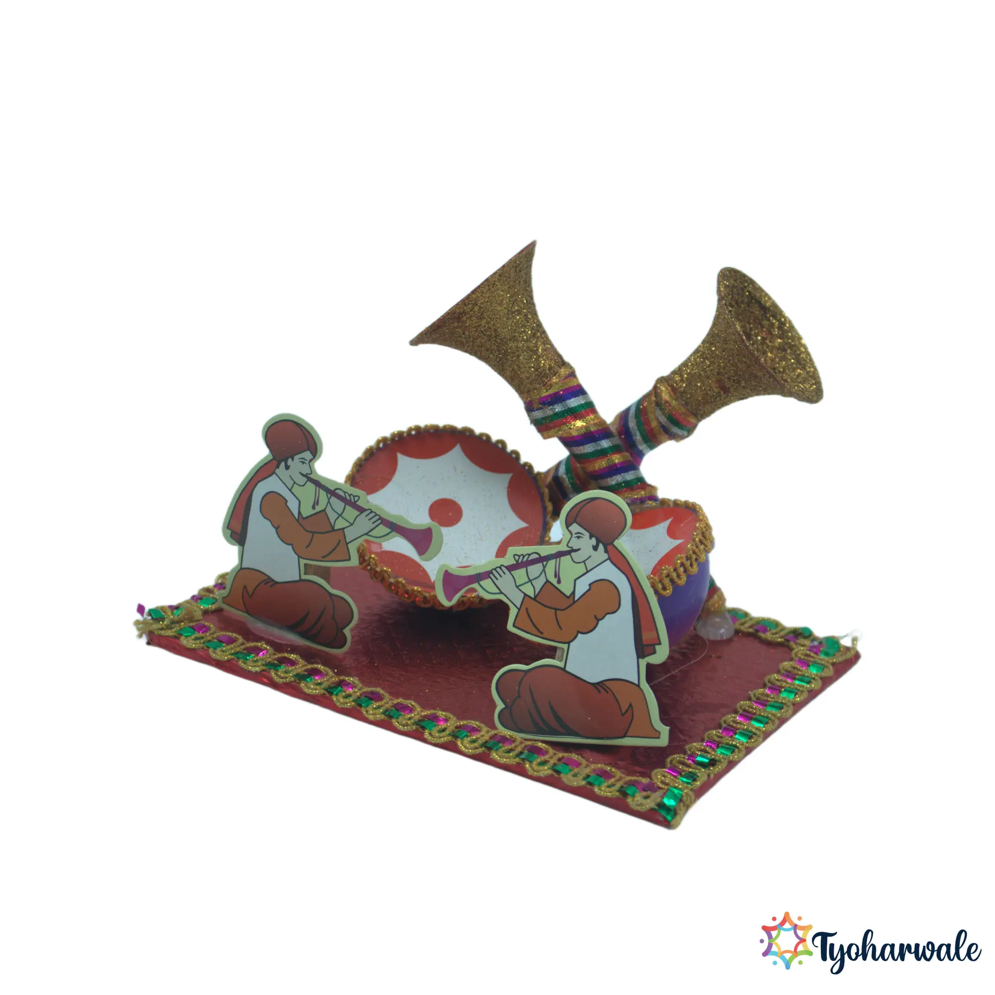 The shehenai miniature symbolises celebration and auspicious beginnings in wedding traditions. Used within rukhwat miniature arrangements, it helps represent cultural elements without taking up space. Suitable for wedding rituals, ceremonial displays, and miniature decor setups, this piece supports traditional presentation during marriage functions. It is commonly included in rukhwat arrangements to visually reflect the importance of music in wedding ceremonies.